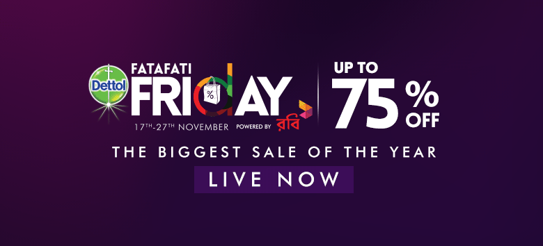 ৭৫% পর্যন্ত ছাড়ে আনলক হলো টিভি, অডিও, ক্যামেরার সেরা সব ডিল,দারাজ আয়োজিত ডেটল ফাটাফাটি ফ্রাইডে পাওয়ার্ড বাই রবি তে! সাথে আছে ১০% ডিসকাউন্ট অনলাইন কার্ড পেমেন্টে ও 0% EMI সুবিধা। স্টক এবং সময় সীমিত। জলদি অর্ডার না করলে স্টক কিন্তু যাবে ফুরিয়ে।