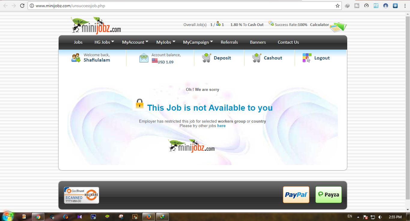 কোন ঝামেলা নেই। আর পেমেন্ট ১০০০০০০০ %। যদি বিশ্বাস না হয় Google সার্চ দিয়ে পেমেন্ট প্রুভ দেখে নিবেন। আর দেখারও দরকার নেই কারন হল পেমেন্ট প্রতিদিন আপনি ইনকাম করতে পারবেন 2$-3$ যদি কাজ Complete করেন ভালভাবে। তাহলে 5$ হলে আপনি Payza + Paypal এ পেমেন্ট নিতে পারবেন।
