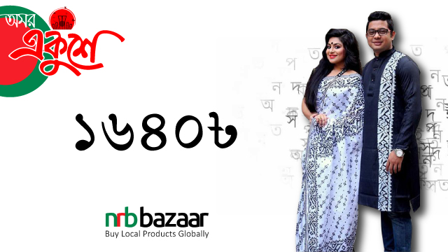 ২১শে ফেব্রুয়ারীর আবহ আপনার পোষাকে ফুটিয়ে তুলতে শাড়ি এবং পাঞ্জাবীর কোনো বিকল্প হয় না। আর কাপলদের জন্য তো শাড়ি এবং পাঞ্জাবীর কম্বিনেশনটাই বেস্ট। আর তাই NRB Bazaar আপনাদের জন্য দিয়ে এসেছে মাতৃভাষা দিবসের জন্য বিশেষ শাড়ি এবং পাঞ্জাবীর কম্বিনেশন। কাপলদের জন্য কটনের শাড়ি এবং ধুপিয়ান সিল্ক পাঞ্জাবীর নতুন রেঞ্জগুলোর থেকে আপনার পছন্দের কাপল কম্বিনেশনটি আজই বেছে নিন। মাতৃভাষা দিবসের আকর্ষণীয় কাপল কম্বিনেশন শাড়ি এবং পাঞ্জাবীগুলো শুরু হচ্ছে মাত্র ২২৯০ টাকার প্যাকেজ থেকে।