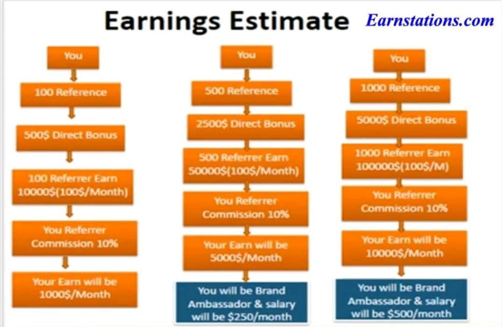 ব্র্যান্ড এম্বাসেডর হিসেবে আমি মাসিক 250$ = ২০, ০০০ BDT সেলারি পাব Earn Station এক কাছ থেকে। যা আমাকে সুন্দর ক্যারিয়ার করে দেবে।