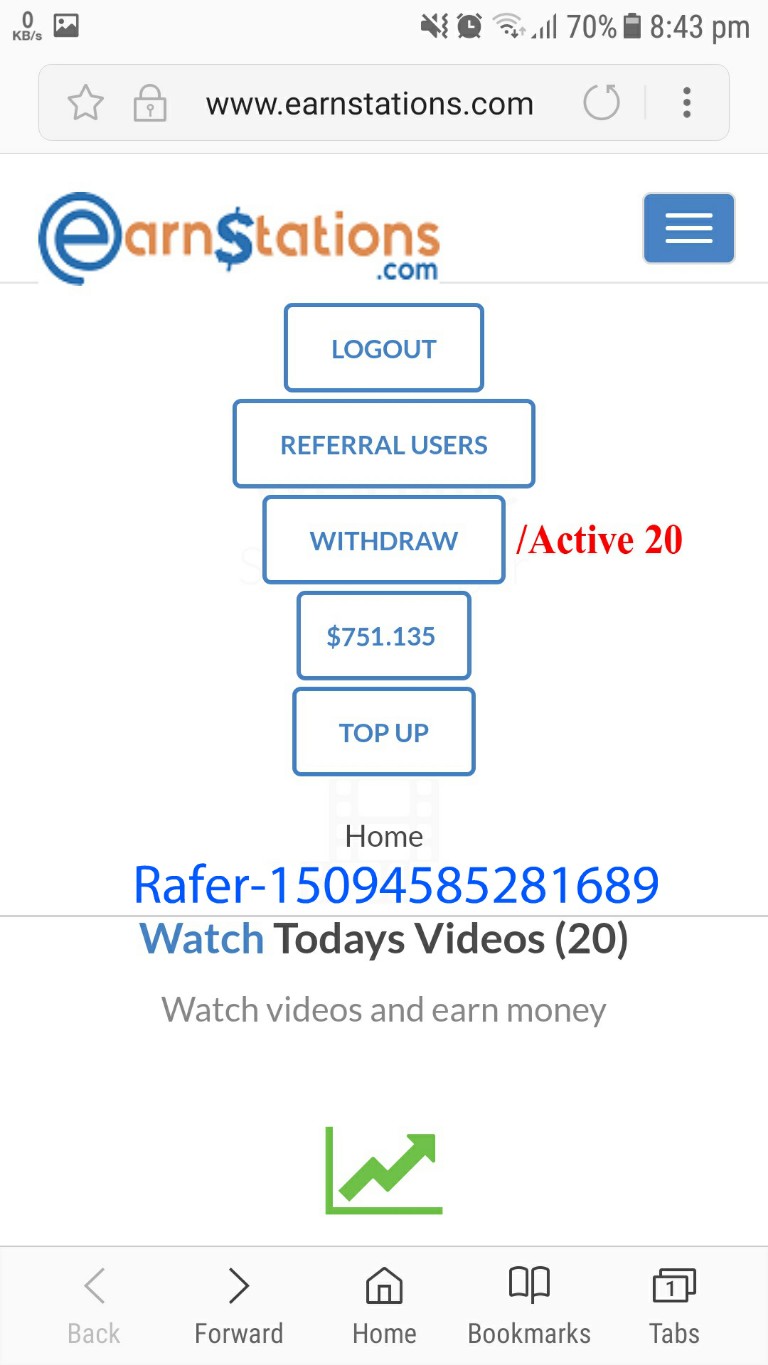 Earn Station সবচেয়ে ভালো বৈশিষ্ট্য হলো প্রতিদিন ২০ টা ভিডিও দেখে সর্বনিম্ন ৮০ টাকা ইনকামের নিশ্চয়তা।