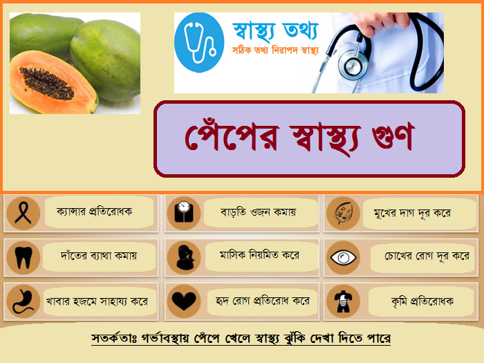 পেঁপে প্রোটিন, ডায়েটারি ফাইবার ও ভিটামিন সি সমৃদ্ধ যা রক্তে বিদ্যমান চর্বিকে রক্ত নালীতে জমাট বাঁধতে দেয় না, ফলে হৃদরোগ এর ঝুঁকি কমে যায়। যারা অতিরিক্ত ওজন কমাতে চান তাদের খাদ্য তালিকায় পেঁপে থাকতেই হবে। পেঁপে তে ক্যালোরি কম পরিমাণে রয়েছে এবং এতে প্রচুর পরিমাণে ডায়েটারি ফাইবার রয়েছে। ডায়েটারি ফাইবার আপনার বিপাকক্রিয়া স্বাভাবিক রাখবে এবং ওজন কমাতে সাহায্য করবে।