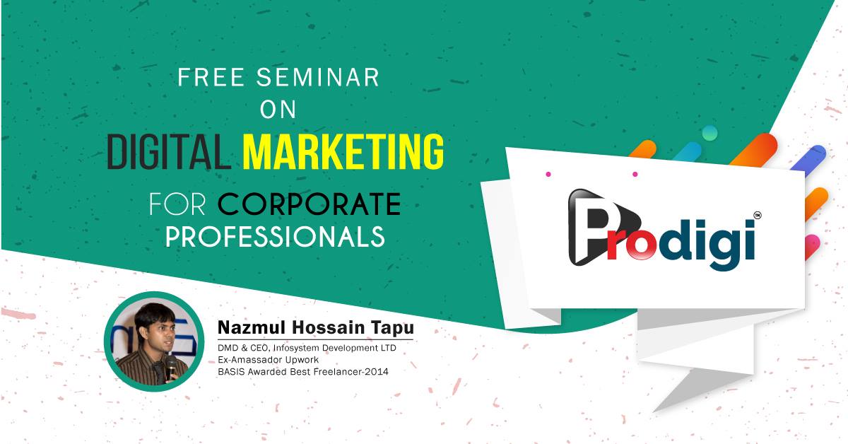 অনলাইনে কিভাবে আপনার ক্যারিয়ার গড়বেন এবং ফ্রিল্যান্সিং মার্কেট প্লেস এ কোন বিষয়টি আপনার জন্য পারফেক্ট, সেই সকল বিষয়ে বিস্তারিত জানতে আজই চলে আসুন আমাদের ফ্রি সেমিনারে। ফ্রি সেমিনারটি অনুষ্ঠিত হবে প্রডিজি প্রাঙ্গনে এবং ফ্রি সেমিনারে অংশগ্রহন করতে আজই ফ্রি রেজিস্ট্রেশন করুন