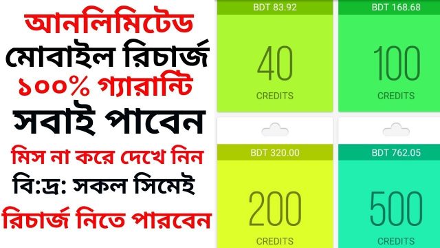 আনলিমিটেড় মোবাইল রিচার্জ নিন নতুন অ্যাপ দিয়ে ১০০ পেমেন্ট প্রুফসহ