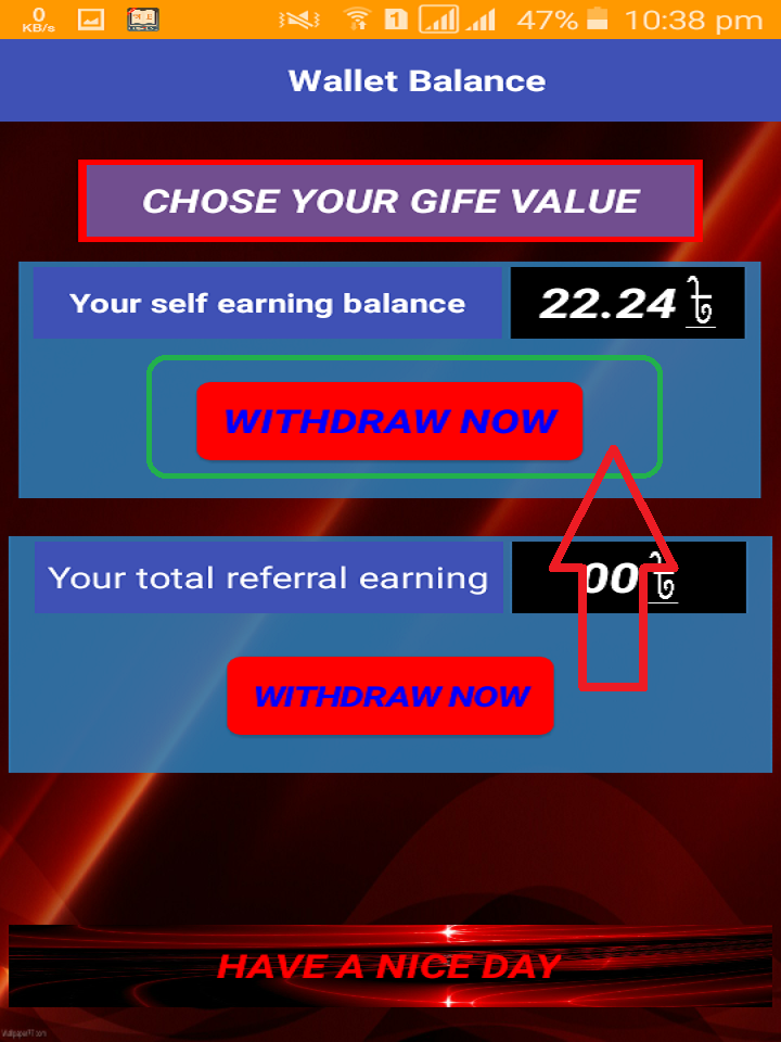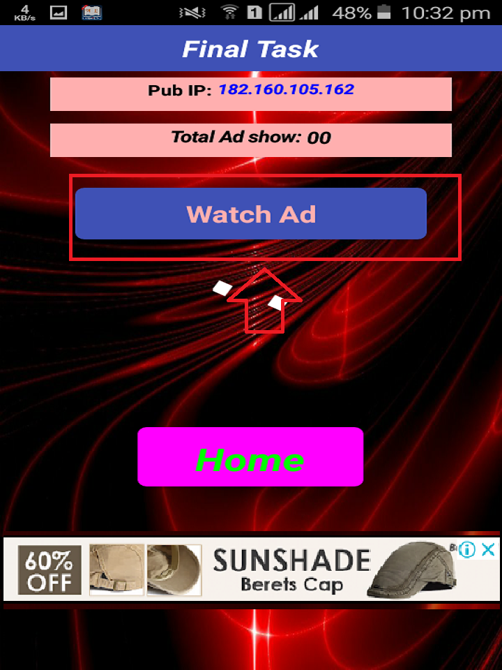 এখানে watch ad কিলিক করবেন, তারপরে একটি ফুল স্কিন এড আসবে সেটাতে কিলিক করবেন এবং আপনার ফোনের ব্রাওজারে গিয়ে 47se আপেক্ষা করবেন, এবং ওয়েব সাইটটি ভাল ভাবে দেখবেন, তাহলে আপনার একবার কাজ সম্পুন্ন হবে, প্রতিবার কাজ সম্পুন্ন করার জন্য আপনি ১-৫ টাকা পর্যন্ত পাবেন, এইটা আপনার এড দেখার উপারে নির্ভর করবে, আপনি যত বেশি এড দেখতে পারবেন তত বেশি ইমকাম, তারপরে আপনি হোম বাটনে কিলিক করে হোম পেজে চলে আসবেন।