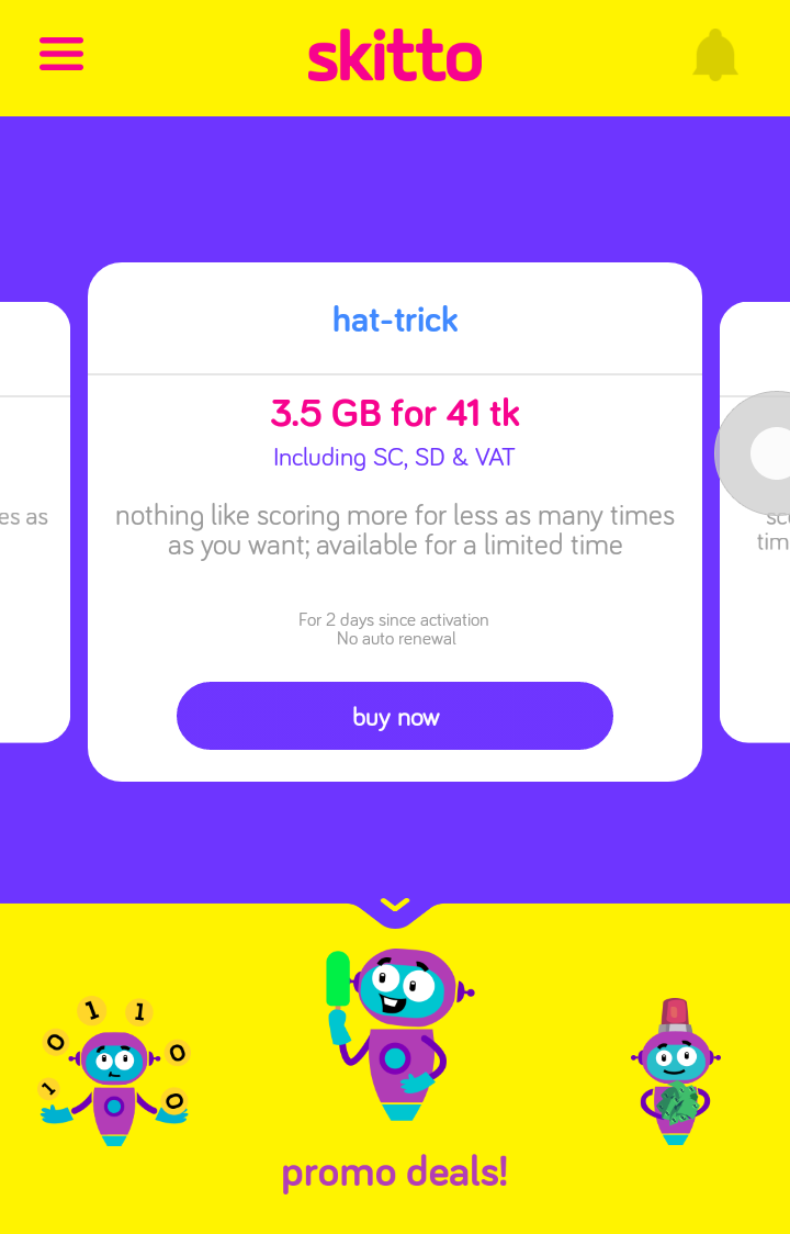 Skitto App অত্যান্ত অত্যাধুনিক করে তৈরি করা হয়েছে এখান থেকে ই রিচার্জ, ডেটা কেনা, ব্যালেন্স চেক করতে পারবেন।