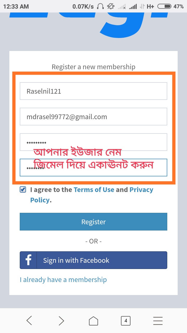 নিচের স্ক্রিনশট অনুযায়ি একাউন্ট ক্রিয়েট করুন