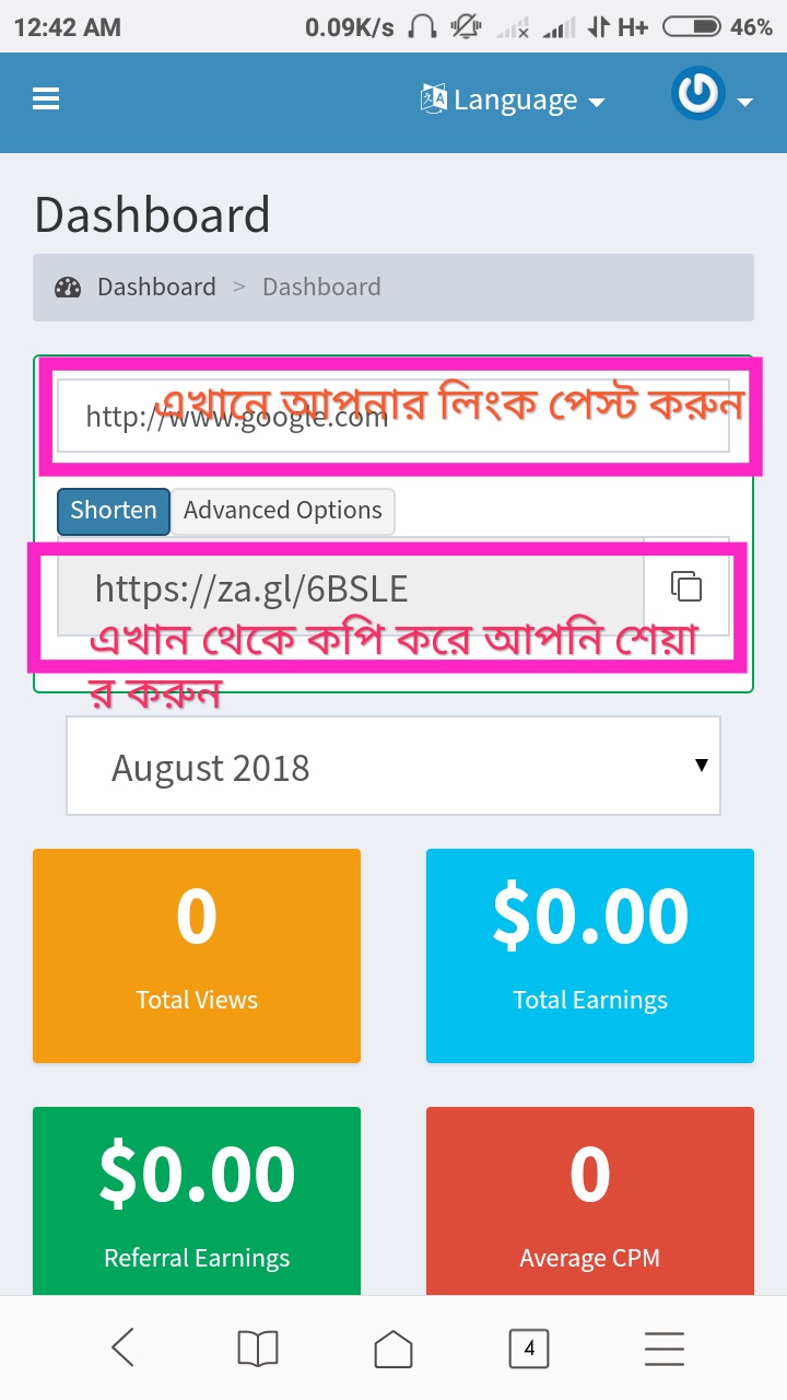 এবং আপনার ফেসবুক আইডি, পেজ, গ্রুপ বা ভিবিন্ন সোশ্যাল সাইটে লিংক শেয়ার করে আয় করুন.