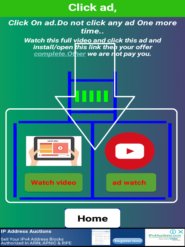 এখানে আপনে একটি ad watch click হবে এবং একটি এডে আপনাকে কিলিক করতে হবে, তাহলে আপনার সামনে একটি ফুল স্কিন এড আসবে এই ad টাতে আপনাকে কিলিক করতে হবে, এবং যে কোনো একটা ব্রাওজারে গিয়ে 50 সেকেন্ড আপনাকে এই ওয়েব সাইটটি খুব ভাল ভাবে দেখতে হবে, পেজটি ভাল ভাবে ঘুরে ঘুরে দেখতে হবে আপনার নেট স্পিড কম হলে একটু বেশি সময় লাগতে পারে, তারপরে সময় শেষ হলে আপনি ওয়েব সাইট থেকে বের হয়ে এসে Ad. টা কেটে দিতে হবে, কোনো ভাবেই একটা এডে দুইবার ক্লিক করা যাবেনা তাহলে আপনার একুন্ট ব্লো হয়ে যাবে, আরwatch video আফারটি সব সময় থাকে নয়া তাই নয়া থাকলে কাজ করার দরকার নাই আর থাকলে ভিডিওটি দেখে আপনাকে ওই এডটিতে কিলিক করে অ্যাপস বা ওয়েব পেজটি ওপেন করতে হবে, তাহলে আপনি একটি বনাস পাবেন। , সঠিক ভাবে আপনি কাজ নয়া করলে আপনার একাউন্ট কিন্তু ব্লোক হয়ে যাবে তাই খুব সাবধান,