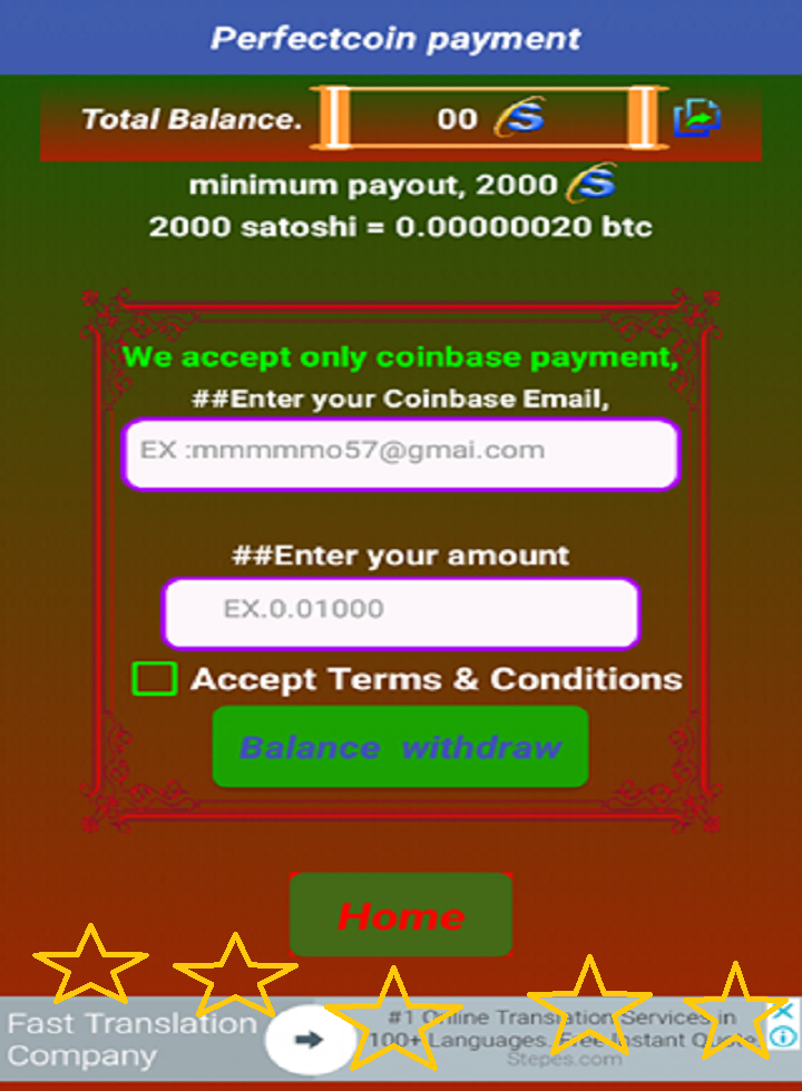 আপনার কয়েন বেস ইমেইল দিতে হবে এবং আপনার পেমেন্ত নেওয়ার পয়েন্টের পরিমান, এখানে দেখুন দেওয়া আছে ২০০০ কয়েন সমান ০.০০০০০০২০ বিটকয়েন,