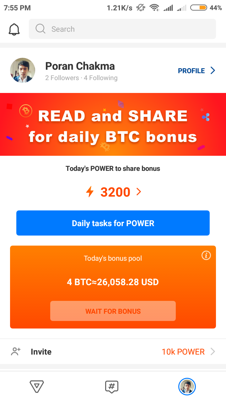 আপনাদের জন্য নিয়ে এলাম আর্নিং এপ। এপ টা এখনো নতুন কিন্তু পেমেন্ট পাবেন ১০০%। এখানে power এর উপর নির্ভর করে কি পরিমাণ আর্ন করতে পারবেন। power convert হয়ে বিটিসি হয়। সো যদি দেখেন আপনার power point খালি পরে আছে তো ঘাবড়াবেন না। ডেইলিটাস্কের মাদ্ধ্যমে আপনি অততা আর্ন করতে পারবেন না। রেফারেলের মাধ্যমে আপনি বেশি আয় করতে পারবেন। আপনার প্রতি রেফারেলে বোনাস পাবেন ১০k করে। আপনারা জানেন ই যে মোবাইল আর্নিং সিস্টেম টা রেফারেল বেইসড হয়ে থাকে।