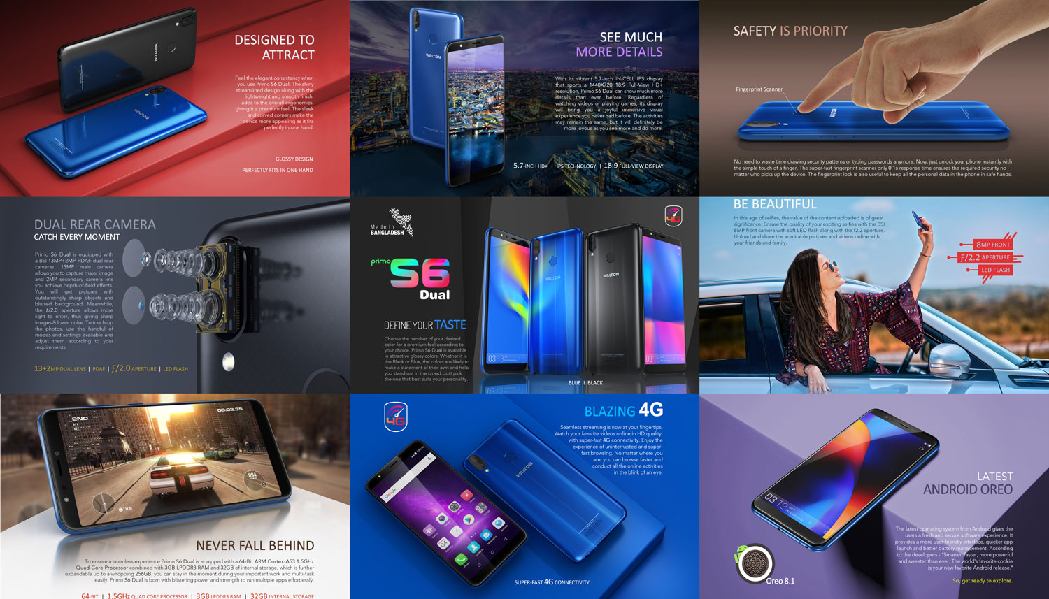 ১৪৯৯৯ বা ১৫০০০ টাকায় পাওয়া যাবে ওয়ালটন প্রিমো এস৬ ডুয়াল স্মার্টফোনটি। ওয়ালটন সুন্দর নীল এবং কালো কালারে বাজারে এনেছে তাদের আরেকটি আকর্ষণীয় স্মার্টফোন প্রিমো এস৬ এর সাক্সেসর প্রিমো এস৬ ডুয়াল। প্রিমো এস৬ এর তুলনায় এর মুল পার্থক্যটা হল এর রিয়ার প্যানেলের ডুয়াল ক্যামেরা মডিউল, যা এস৬ এ ছিল না। ডিভাইসটি লেটেস্ট অ্যান্ড্রয়েড ৮.১.০ অপারেটিং সিস্টেম চালিত, যা সত্যিই অ্যান্ড্রয়েড প্রেমী বিশেষ করে যারা লেটেস্ট আপডেটে থাকতে ভালোবাসেন তাদের জন্য দারুন খবর।