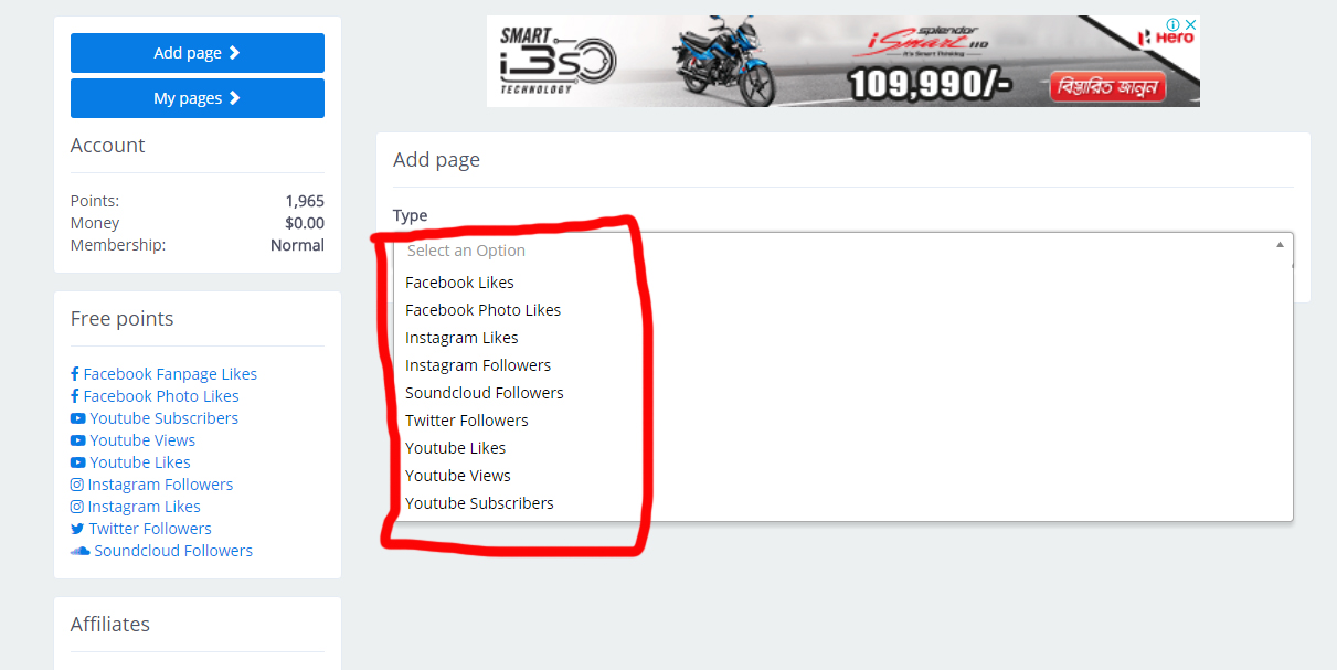অর্থাৎ একটি ফেক আইডি ইউজ করতে পারেন যেটা দিয়ে লাইক সাবস্ক্রাইব টিউমেন্ট এগুলোর কাজ করবেন এবং করবেন এই সাইটে তারপর এই সাইটে আপনার অ্যাড পেজ অপশন আছে সেখান থেকে আপনি কি চান সেটা সিলেক্ট করে দিবেন দেওয়ার পর সেখান থেকে আপনি আপনার কাঙ্খিত অপশনগুলো পূর্ণ করবেন করার পর পাবলিশ করে দিবেন এটা ব্যস দেখবেন আপনার পয়েন্ট থেকে অটোমেটিক ভাবে পয়েন্ট কেটে নিবে এবং আপনার পেইজে বাপে ইউটিউবে বা যেখানে বলেন সেখানে আপনার কাংখিত জিনিস প্রতিদিন নির্দিষ্ট পরিমাণ ভাবে পেয়ে যাবেন তবে এটা খুব বেশি পরিমাণে একদিনে আসবে না আর তো 100 বা তার বেশি আমন হতে পারে তবে আপনার পয়েন্টের উপর নির্ভর করবে যা আপনি কতগুলো সাবস্ক্রাইবার লাইক বা ফলো আর পাবেন তবে এই সাইটে জয়েন করলেই স্টার্টিং এ পাবেন 300 পয়েন্ট এবং প্রতিদিন কাজ করার ফলে একটি লিমিট আছে লিমিট পর্যন্ত কাজ করলে আপনি প্রতিদিন আরও 400 পয়েন্ট ফ্রি পাবেন এভাবে প্রতিটি লাইক বা সাবস্ক্রাইবার দ্রুত পাওয়ার জন্য পয়েন্টের প্রয়োজন হবে 10 পয়েন্ট সুতরাং 400 এবং 300 তে হয় 700 পয়েন্ট তাহলে এখান থেকে আপনি অনায়াসে প্রতিদিন 70 জন এমনিতেই পাবেন এর সাথে আপনি যদি অন্যের চ্যানেল লাইক কম সাবস্ক্রাইব করে আরো পয়েন্ট করেন সেখান থেকে আপনি আরো বেশি বেশি পাবেন।