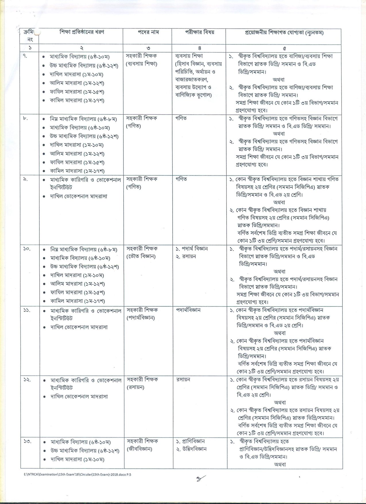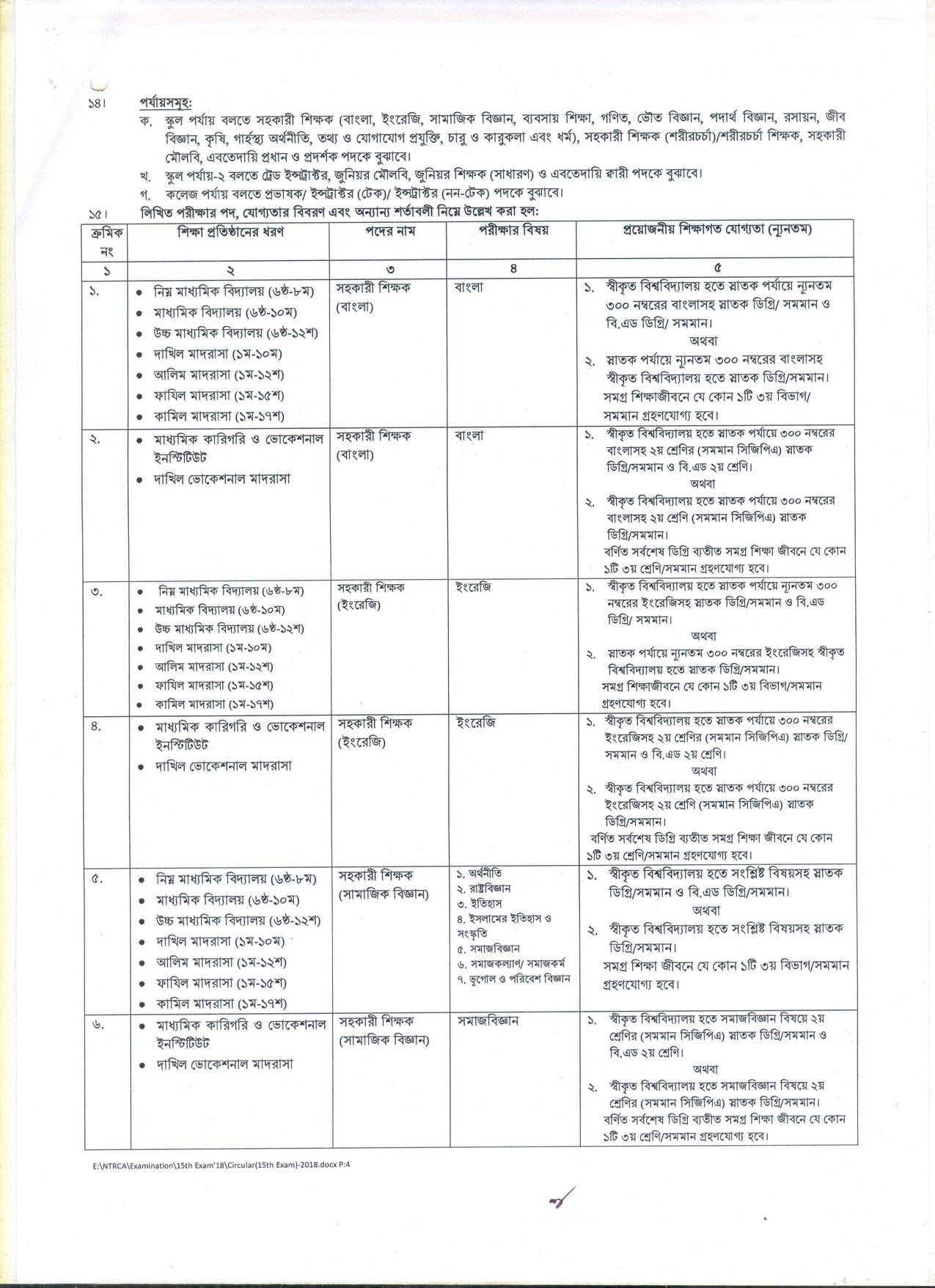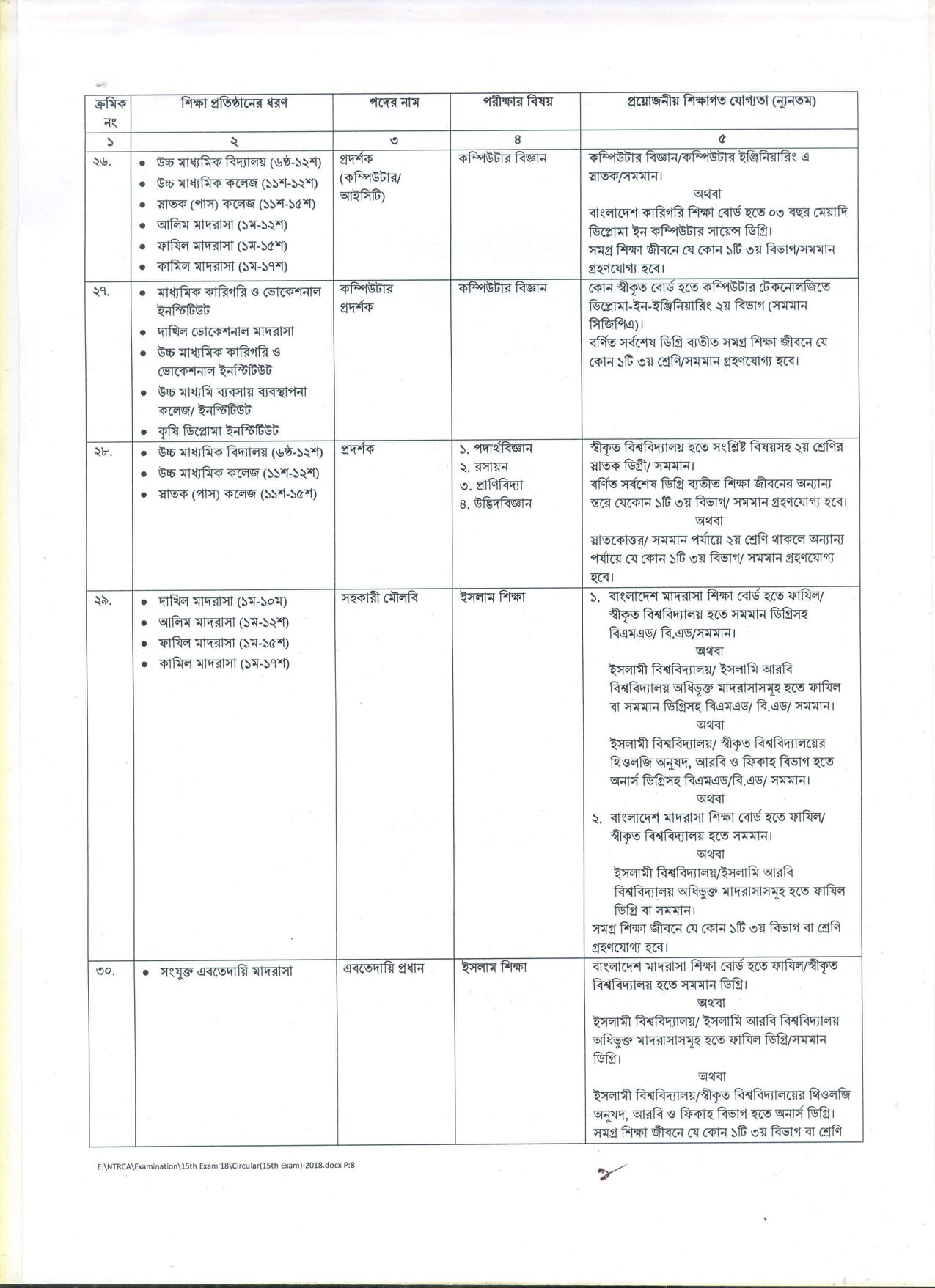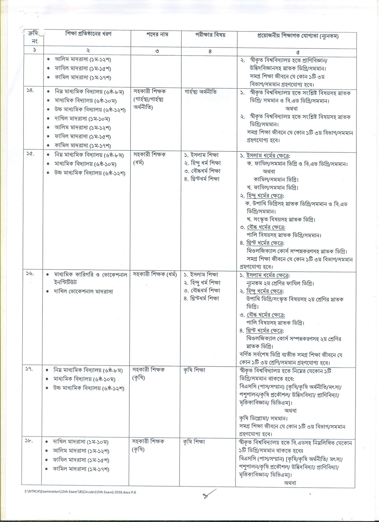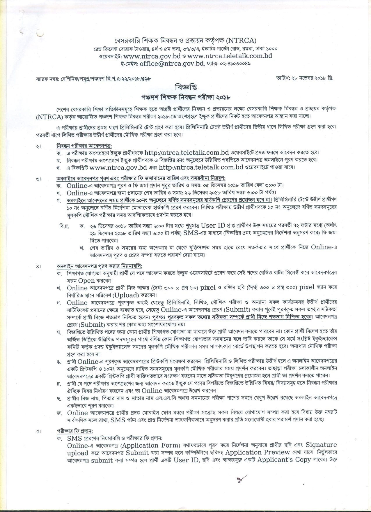 দেশের বেসরকারি শিক্ষা প্রতিষ্ঠানসমূহে শিক্ষক হতে আগ্রহী প্রার্থীদের নিবন্ধন ও প্রত্যয়নের লক্ষ্যে বেসরকারি শিক্ষক নিবন্ধন ও প্রত্যয়ন কর্তৃপক্ষ (NTRCA) কর্তৃক আয়োজিত ১৫তম শিক্ষক নিবন্ধন পরীক্ষা ২০১৮-তে অংশগ্রহণে ইচ্ছুক প্রার্থীদের নিকট হতে আবেদনপত্র আহবান করেছে।