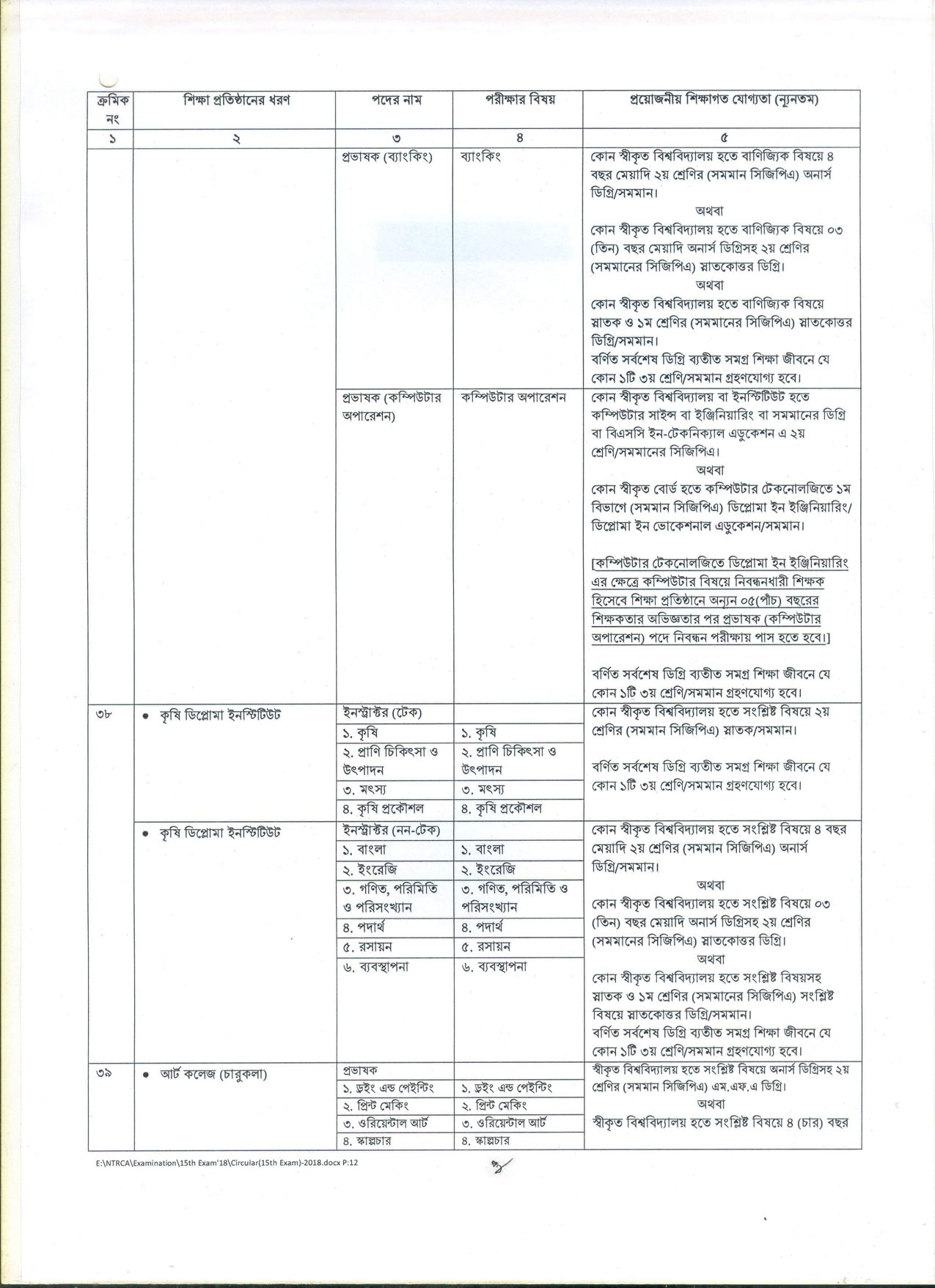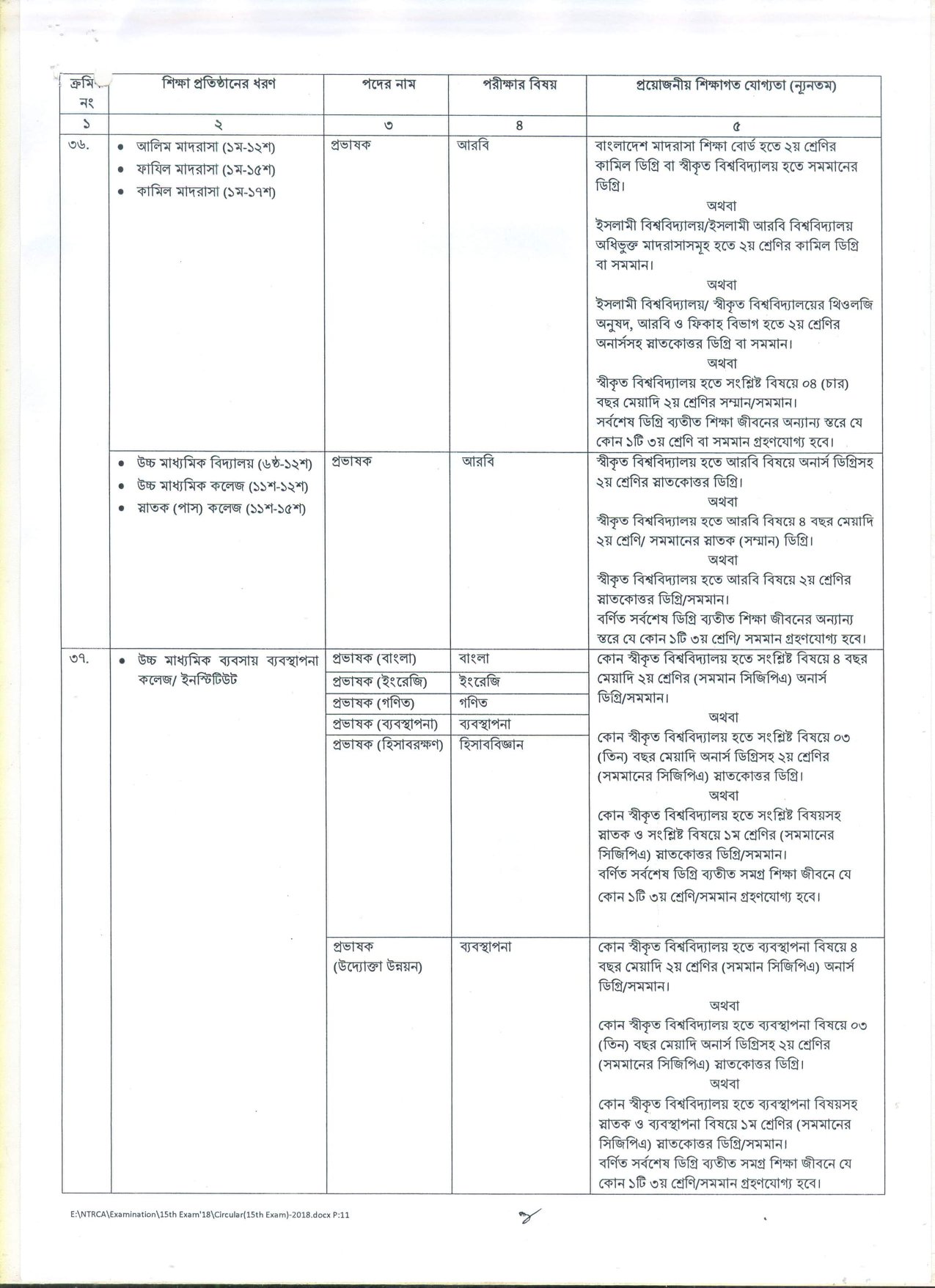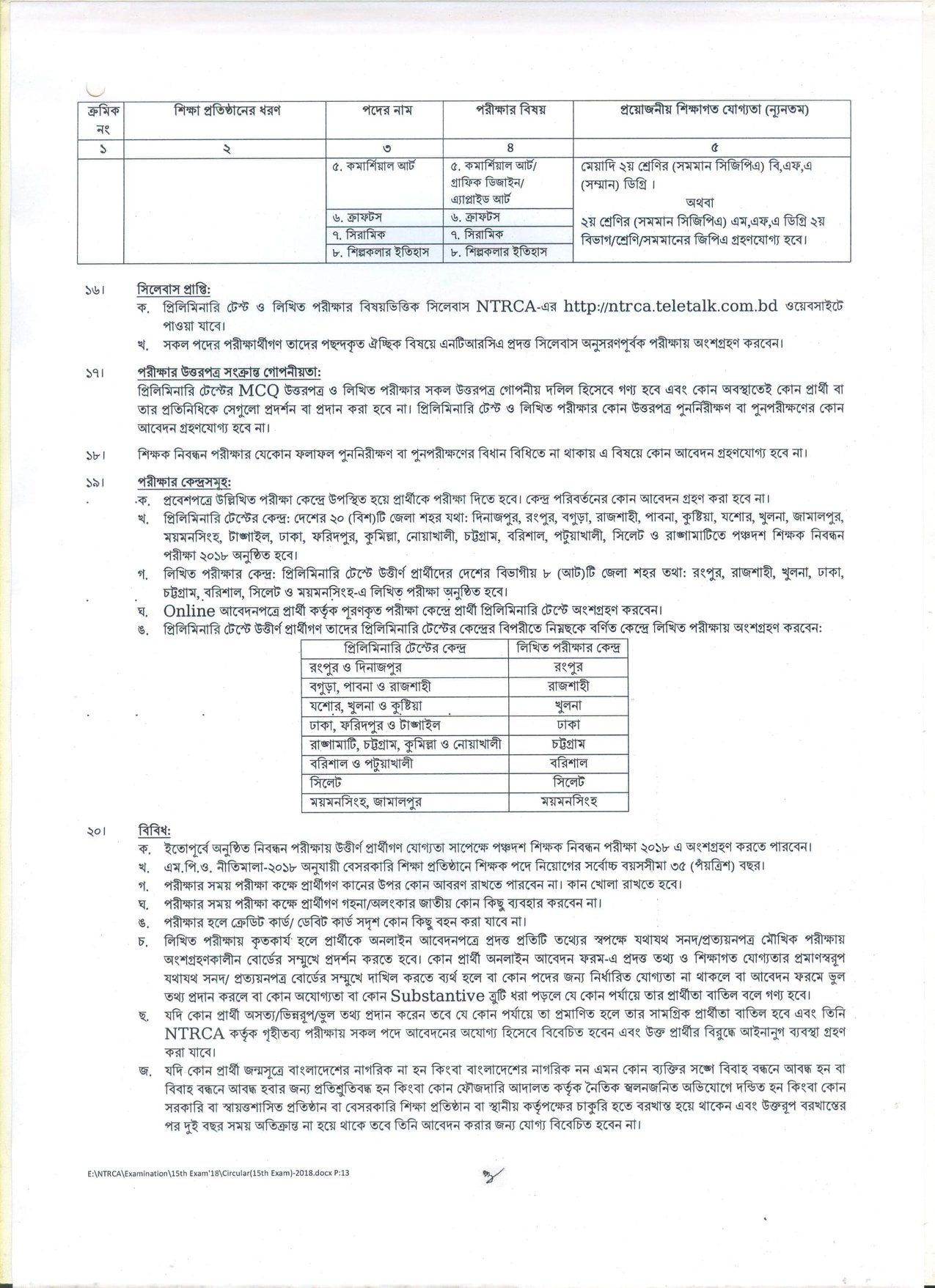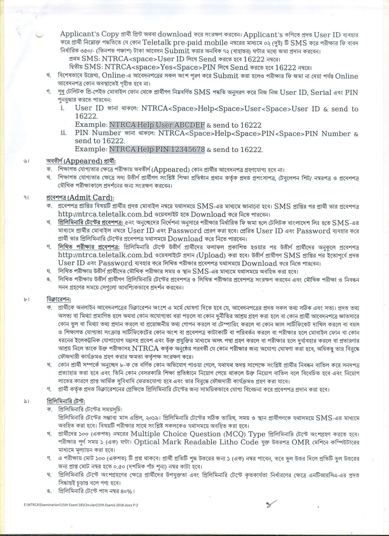 দেশের বেসরকারি শিক্ষা প্রতিষ্ঠানসমূহে শিক্ষক হতে আগ্রহী প্রার্থীদের নিবন্ধন ও প্রত্যয়নের লক্ষ্যে বেসরকারি শিক্ষক নিবন্ধন ও প্রত্যয়ন কর্তৃপক্ষ (NTRCA) কর্তৃক আয়োজিত ১৫তম শিক্ষক নিবন্ধন পরীক্ষা ২০১৮-তে অংশগ্রহণে ইচ্ছুক প্রার্থীদের নিকট হতে আবেদনপত্র আহবান করেছে।