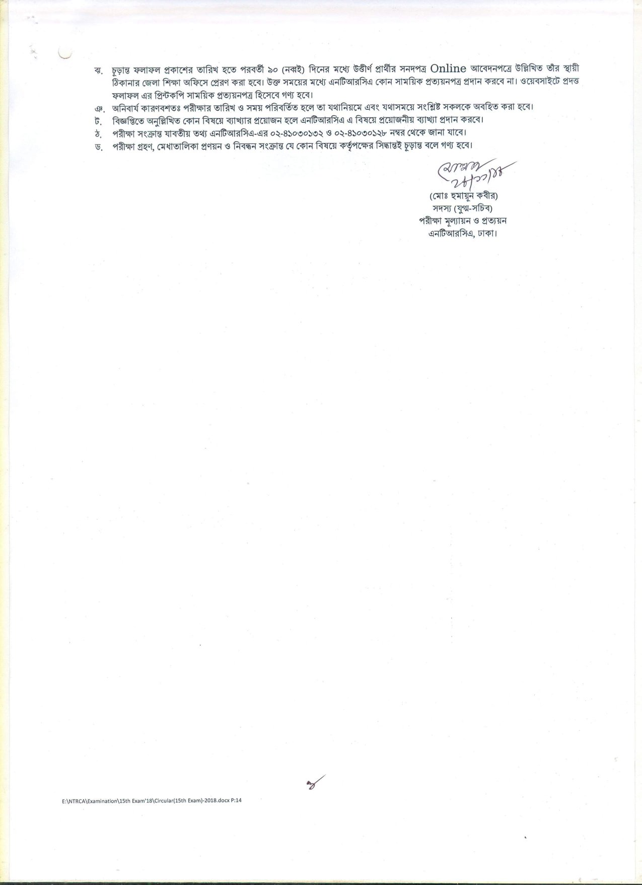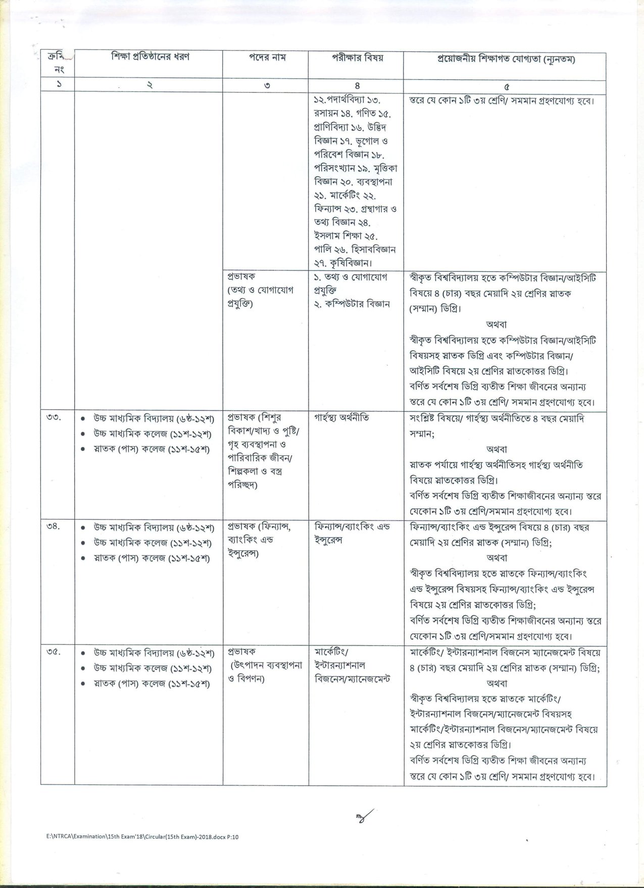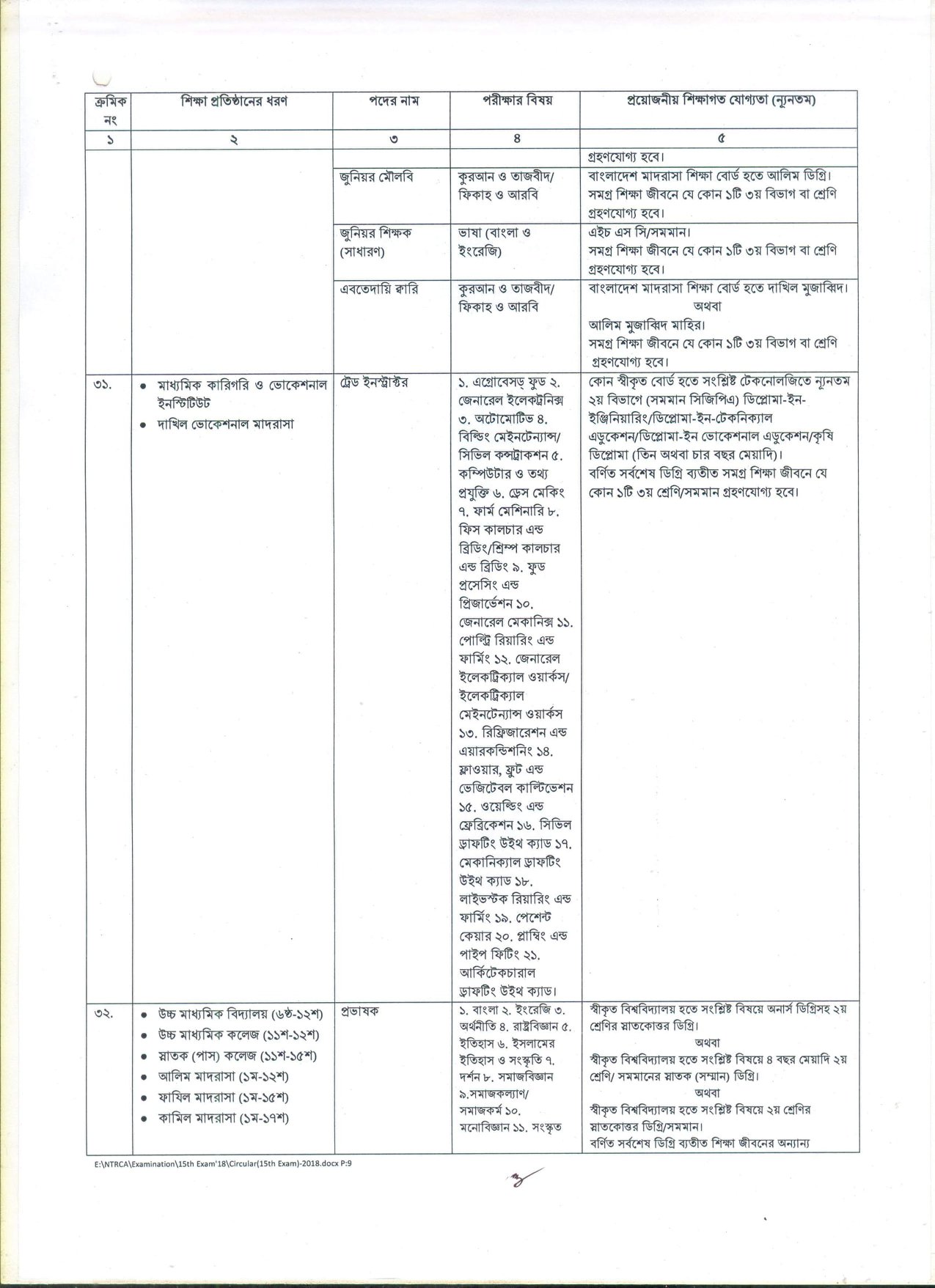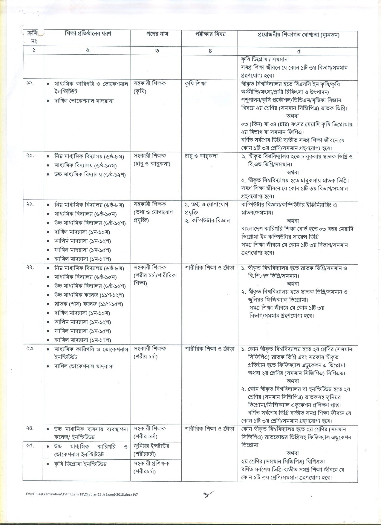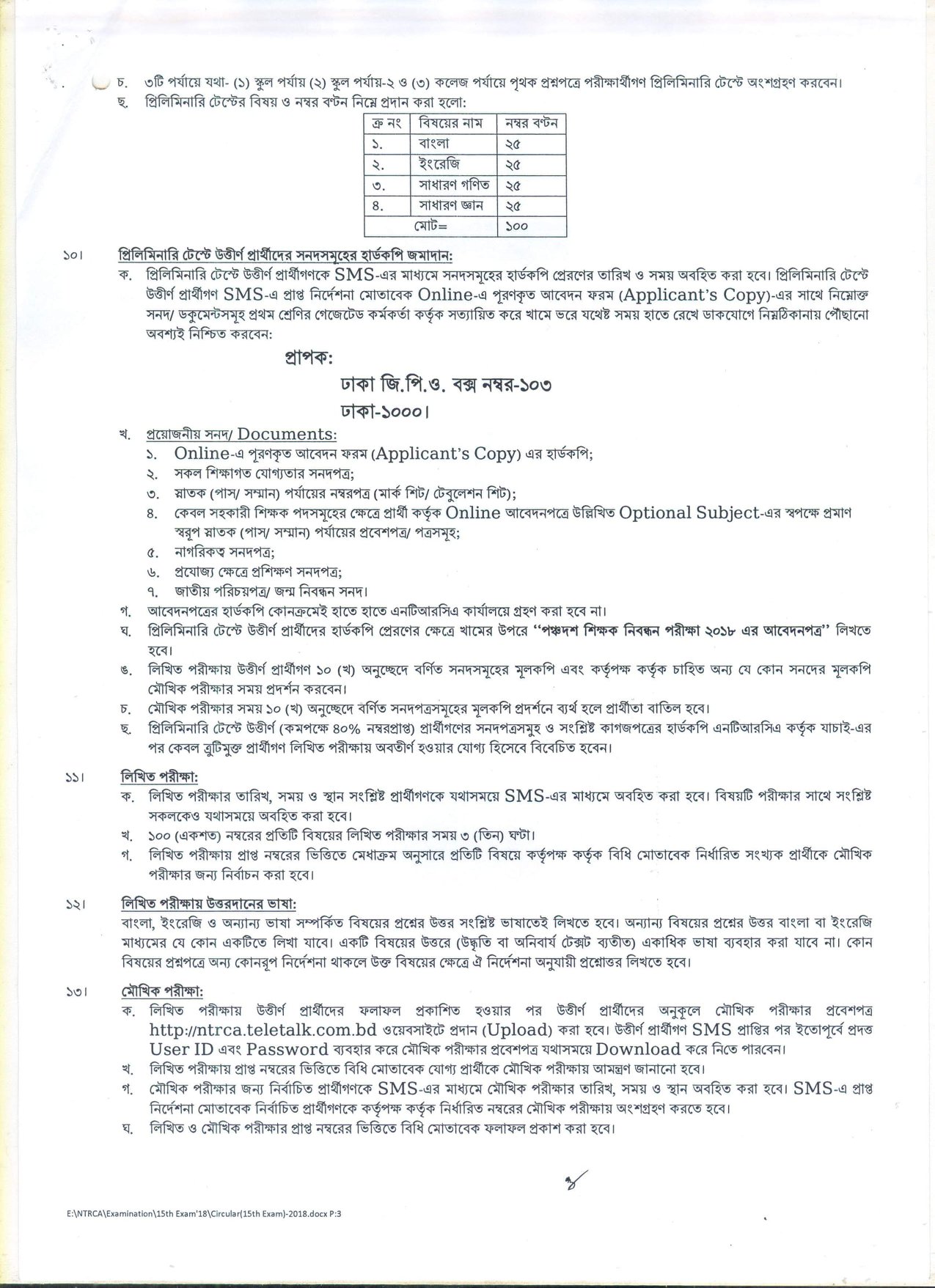 দেশের বেসরকারি শিক্ষা প্রতিষ্ঠানসমূহে শিক্ষক হতে আগ্রহী প্রার্থীদের নিবন্ধন ও প্রত্যয়নের লক্ষ্যে বেসরকারি শিক্ষক নিবন্ধন ও প্রত্যয়ন কর্তৃপক্ষ (NTRCA) কর্তৃক আয়োজিত ১৫তম শিক্ষক নিবন্ধন পরীক্ষা ২০১৮-তে অংশগ্রহণে ইচ্ছুক প্রার্থীদের নিকট হতে আবেদনপত্র আহবান করেছে।