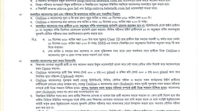 আবেদনের নিয়ম বিস্তারিত বর্ণনা করা হয়েছে বিজ্ঞপ্তিতে। বিজ্ঞপ্তিটি এনটিআরসিএ (NTRCA) এর http://www.ntrca.gov.bd/ এবং http://ntrca.teletalk.com.bd/result/ওয়েবসাইটে পাওয়া যাবে।