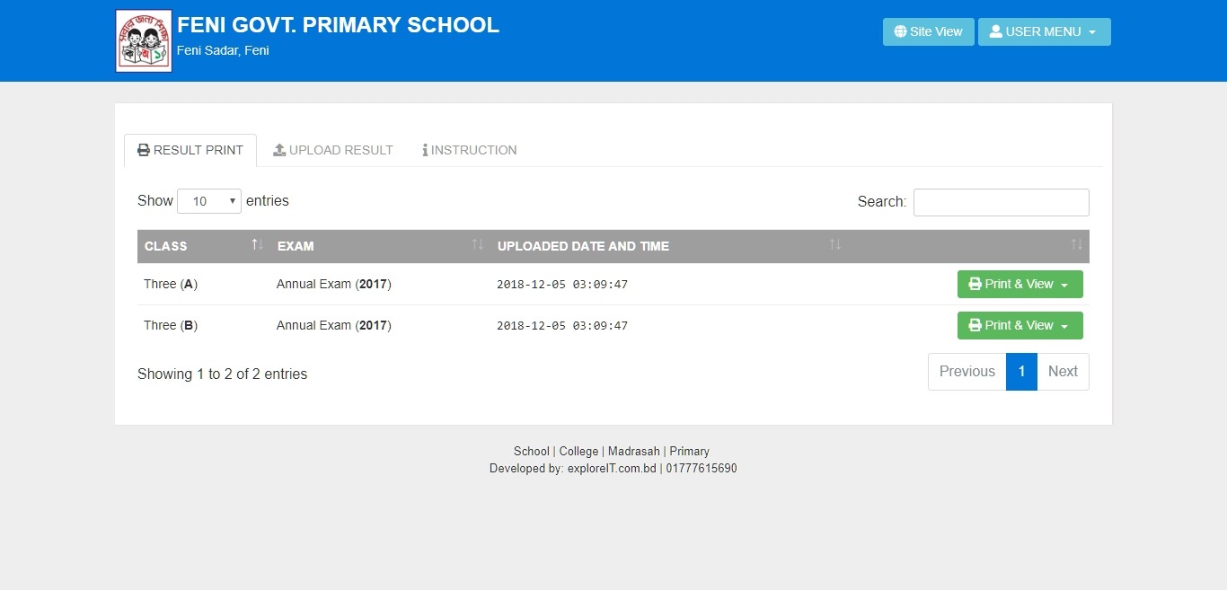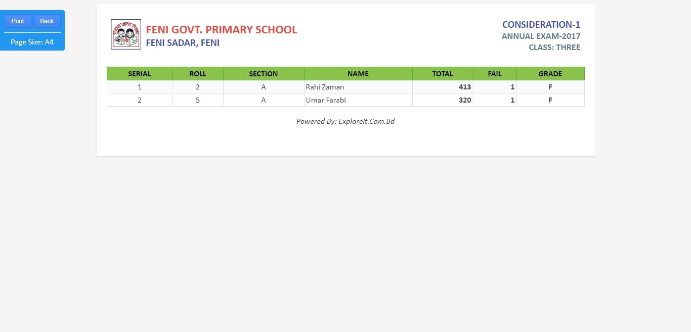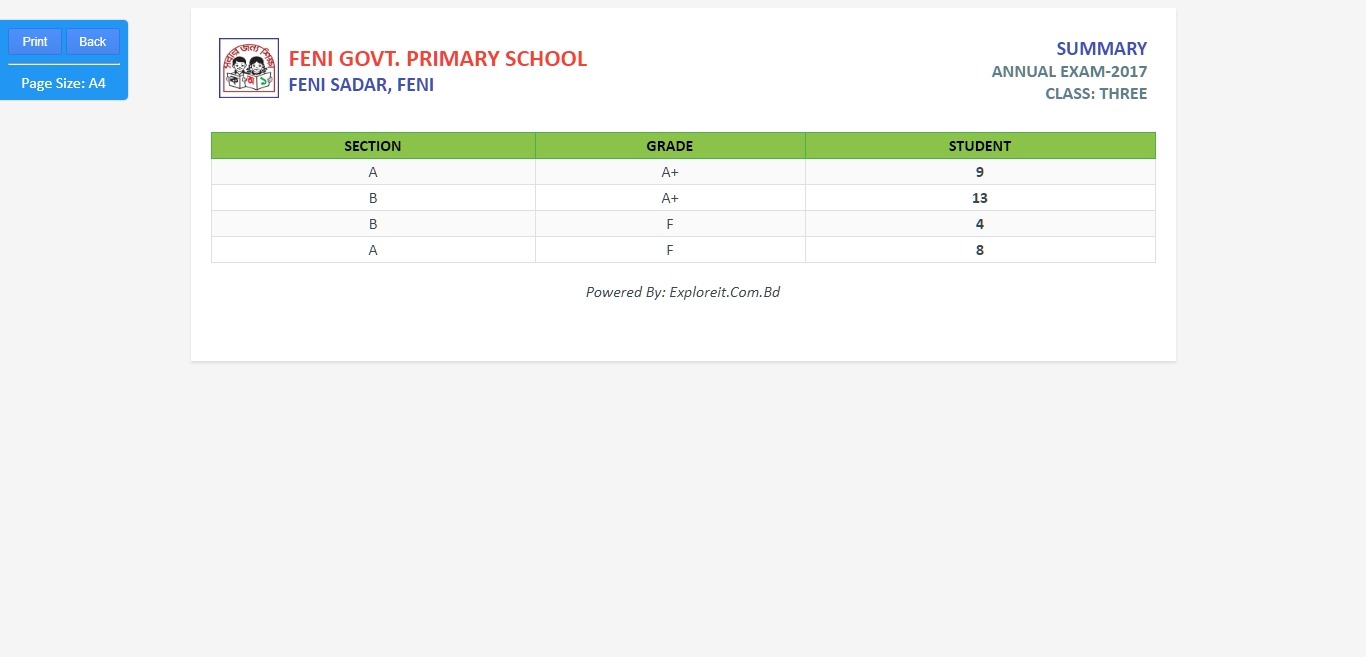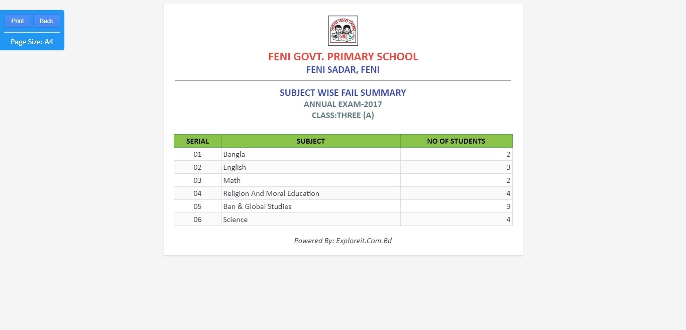 o ফলাফল সামারী ইত্যাদি তালিকা গুলো প্রিন্ট করা যায়
