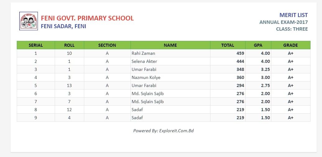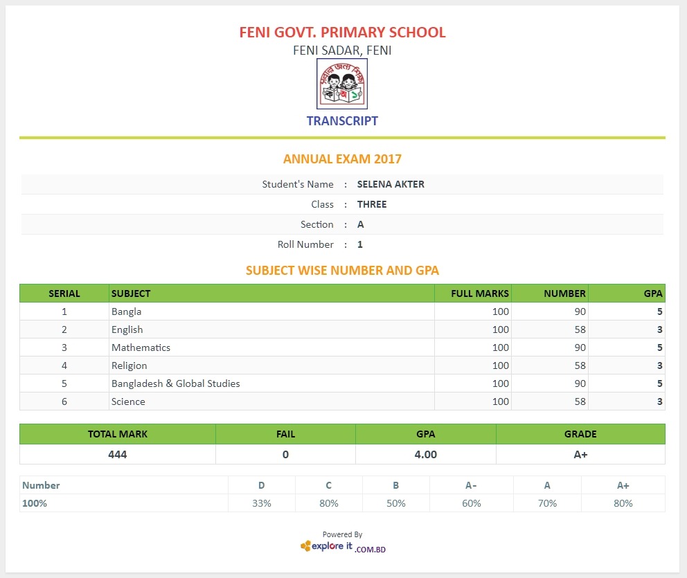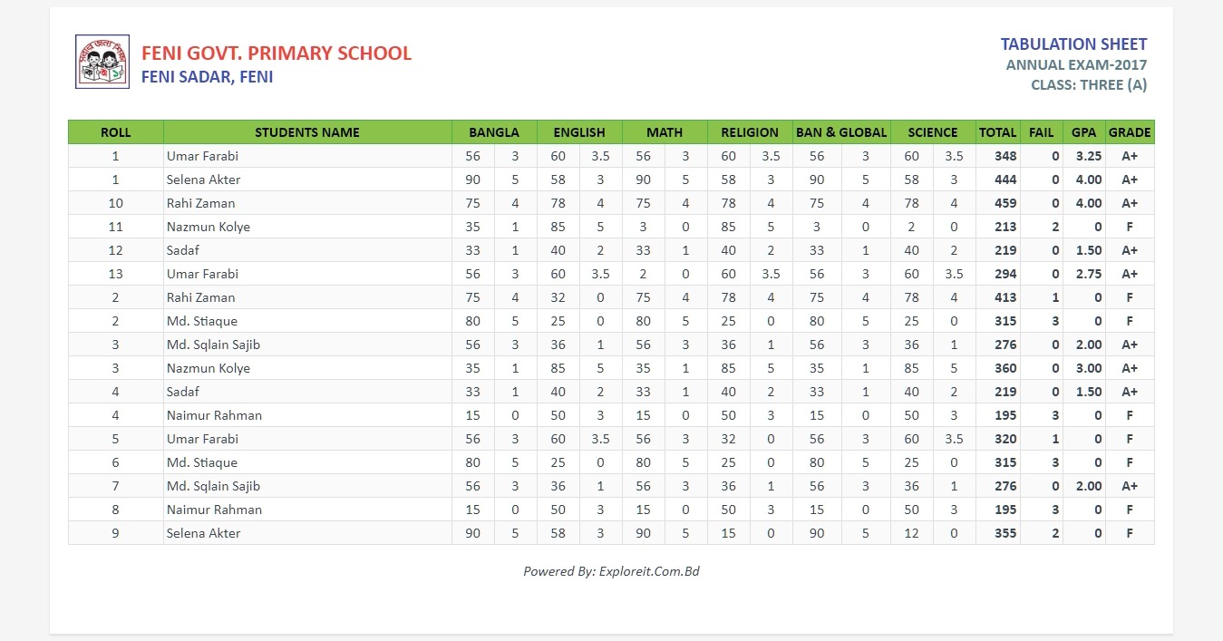 প্রাথমিক বিদ্যালয় সমূহের বার্ষিক পরীক্ষার ফলাফল তৈরী করুন
