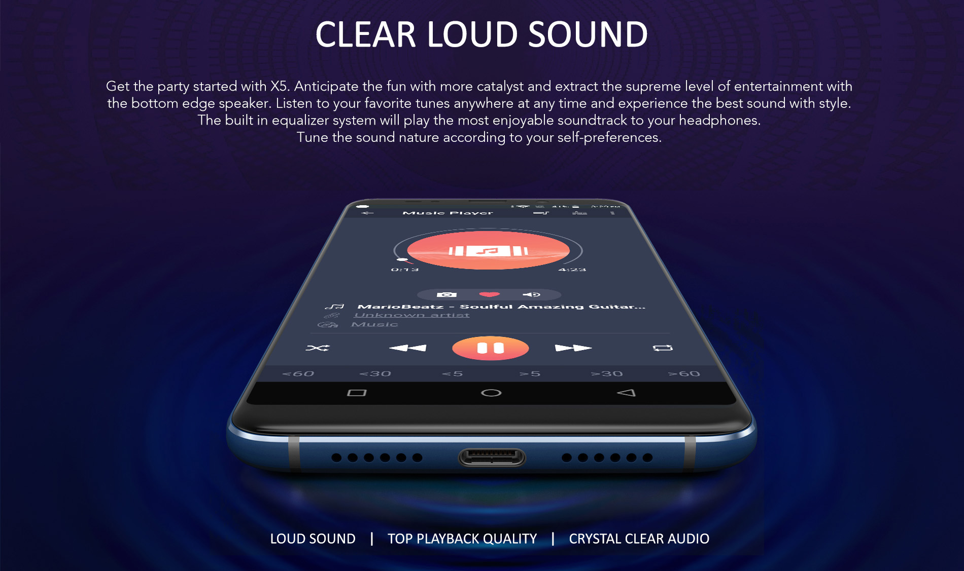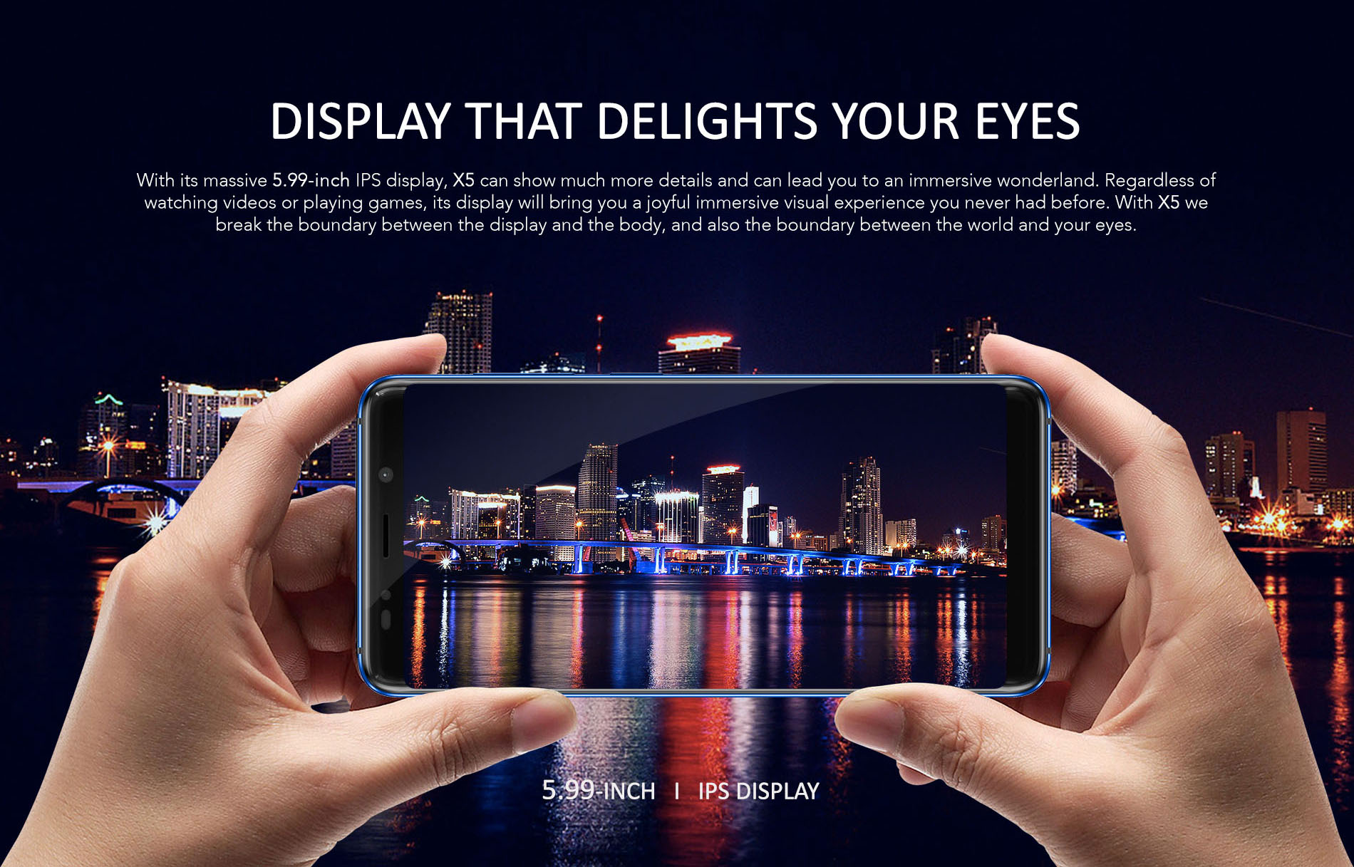 এক্স৫ সম্পূর্ণ ডিভাইসটি মেটাল এবং গ্লসি প্লাস্টিক এর মিশ্রণে প্রস্তুত করা। আর এর সিনসি কাটিং মেটাল বডি ডিভাইস টির প্রিমিয়ামনেসকে বাড়িয়ে দিয়েছে শতগুনে। ব্যবহারকারিরা এটিকে হাতে নিয়ে সেই উপলব্ধিটা খুব ভালভাবেই পাবে। ডিভাইসটি প্রস্থে ৭৪.৩ মিলিমিটার, দীর্ঘে ১৫৯.৫৮ মিলিমিটার আর ডিভাইসটি মাত্র ৮.৪ মিলিমিটার পুরু। আর ব্যাটারি সহ এই ডিভাইসটির ওজন ১৬৬ গ্রাম।