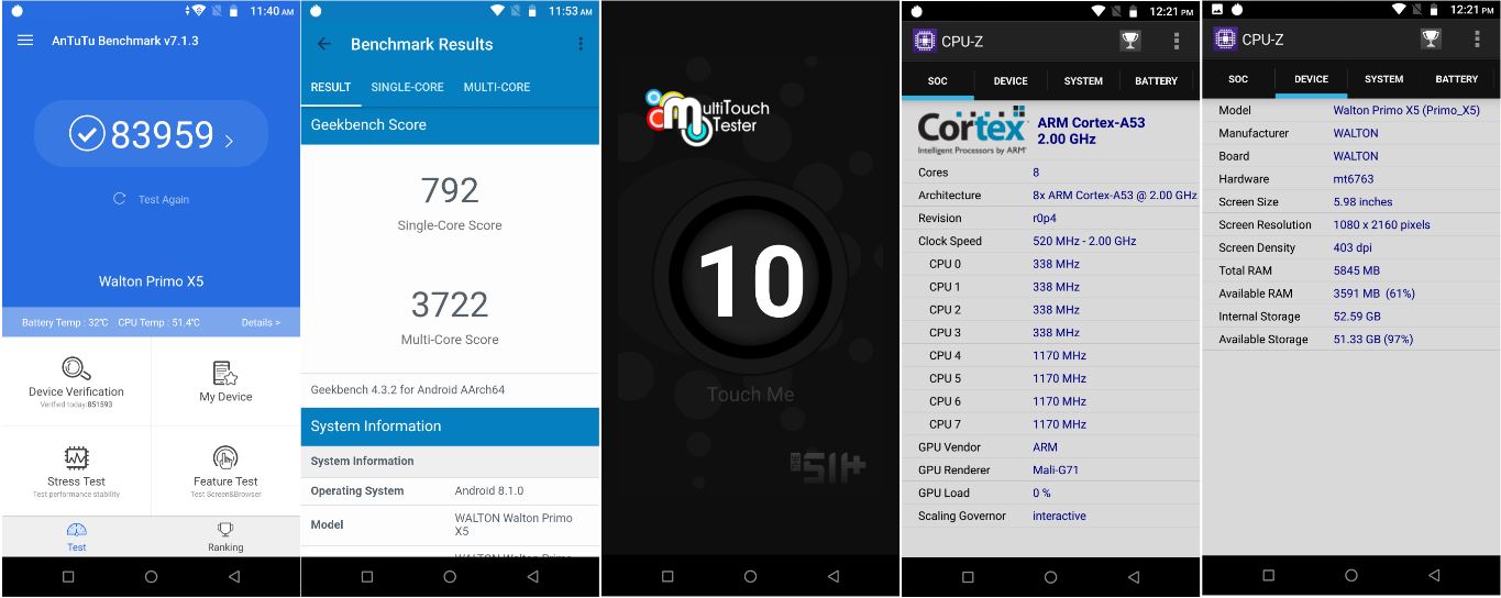 এনটুটূ বেঞ্চমার্ক স্কোরে এই ডিভাইসটির স্কোর এসেছে ৮৩৯৫৯। আর গিকবেঞ্চ অ্যাপে এর স্কোর এসেছে সিঙ্গেল স্কোরে ৭৯২ এবং মাল্টি কোরে এসেছে ৩৭২২।