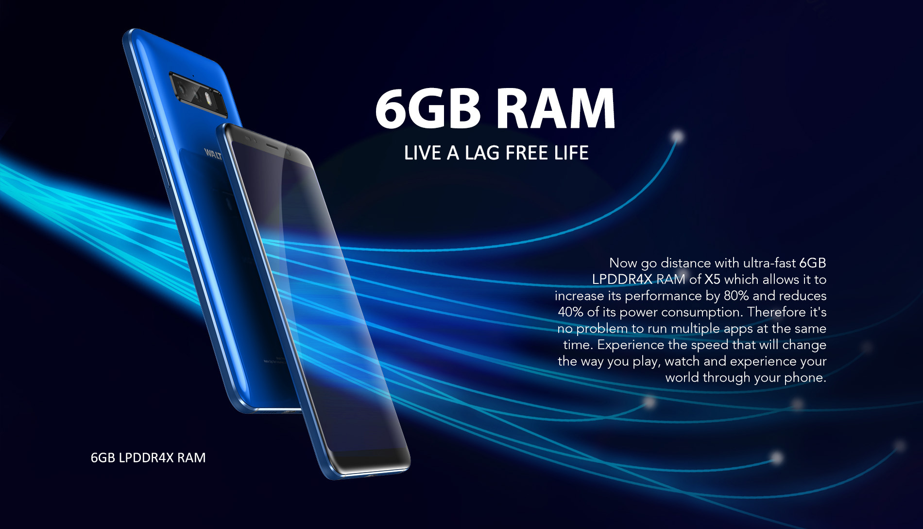 ডিভাইসটিতে ব্যবহার করা হয়েছে ৬ জিবি র্যাম। র্যামটি এলপি ডিডিআর৪ এক্স প্রযুক্তির হওয়ার ফলে পারফরমেন্স এর দিক দিয়ে এটি অন্যান্য গুলোর চেয়ে ৮০% বেশি ভালো। আর ৪০% বেশি ব্যাটারি সাশ্রয়ী। ডিভাইসটিতে আরও থাকছে ৬৪ জিবি রম।
