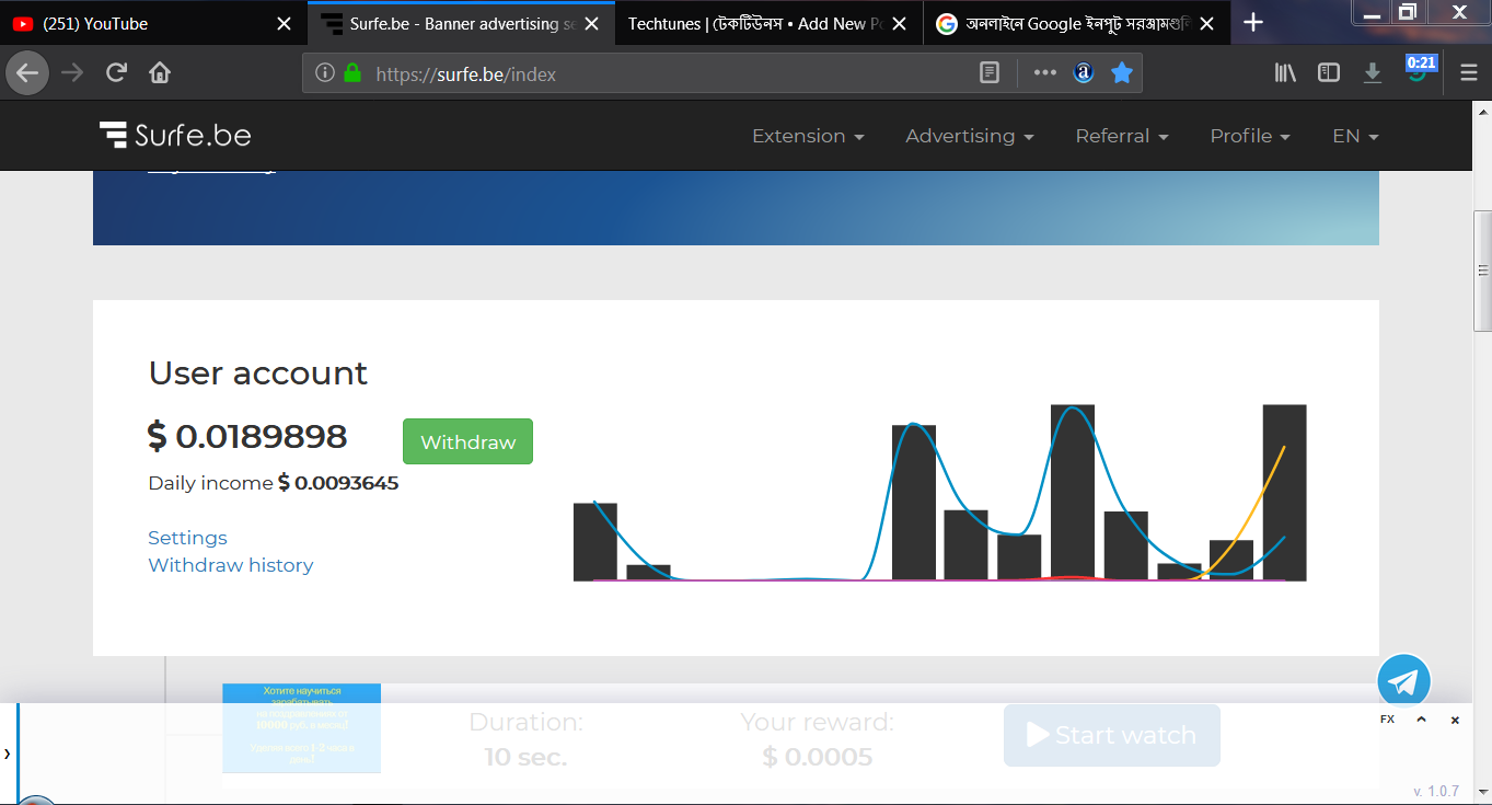 ওয়েবসাইট ব্রাউজ এর মাধ্যমেও আর্ন করতে পারবেন। তাই সবাই কাজ শুরু করে দেন। আর এটা ১০০% পেমেন্ট দেয়। সর্বনিম্ন উইথড্র $০.৩।