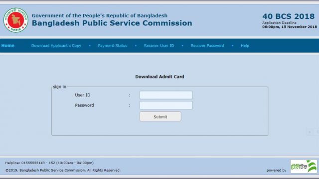 বিপিএসসি বাংলাদেশ সরকারি কর্মকমিশন বা ৪০ তম বিসিএস এর বিজ্ঞপ্তি ও নির্দেশনা প্রকাশ করেছে বিপিএসসির ওয়েব সাইট http://www.bpsc.gov.bd এর মাধ্যমে। ৪০ তম বিসিএস পরীক্ষার বিজ্ঞপ্তি, ৪০ তম বিসিএস পরীক্ষার সিলেবাস এবং ৪০ তম বিসিএস পরীক্ষার নির্দেশাবলি প্রকাশ করেছে বাংলাদেশ সরকারি কর্মকমিশন।