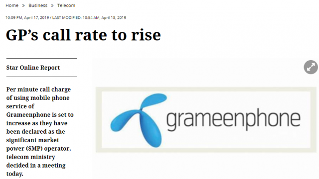 ডেইলি স্টার এ (https://www.thedailystar.net/business/telecom/news/gps-call-rate-rise-1731115) এ সম্পর্কে একটি