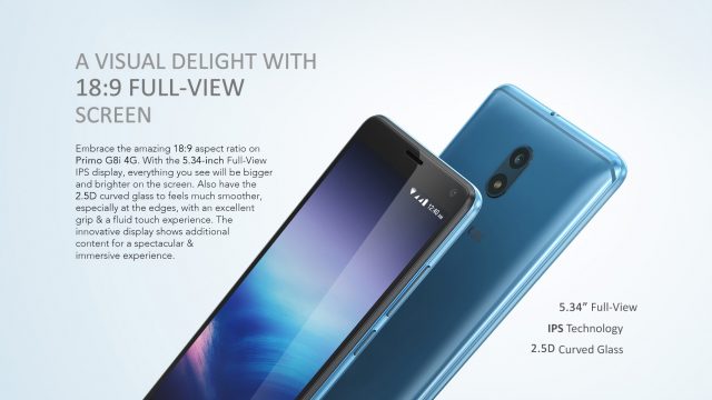 একনজরে এই প্রিমো জি৮আই ৪জি স্মার্টফোনটিতে থাকছেঃ অ্যান্ড্রয়েড ৮.১ অরিও ভার্সন, ২ জিবি র্যাম এবং ১৬ জিবি রম - পাশাপাশি ৬৪ জিবি পর্যন্ত এক্সপান্ডেবল মেমোরি কার্ড সাপোর্ট, ১.৪ গিগাহার্জ কোয়াড কোর প্রসেসর, ৫.৩৪ ইঞ্চি ফুল ভিউ আইপিএস ডিসপ্লে, ৮ মেগাপিক্সেল রিয়ার এবং ৫ মেগাপিক্সেল ফ্রন্ট ক্যামেরা; আর সম্পূর্ণ ডিভাইসকে ব্যাকআপ দেয়ার জন্য ২২৫০ মিলি অ্যাম্পিয়ার ক্ষমতার ব্যাটারি।