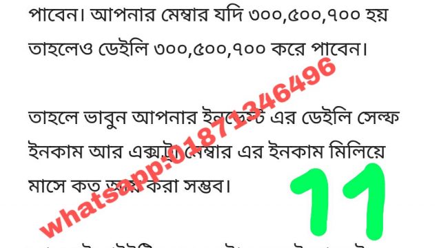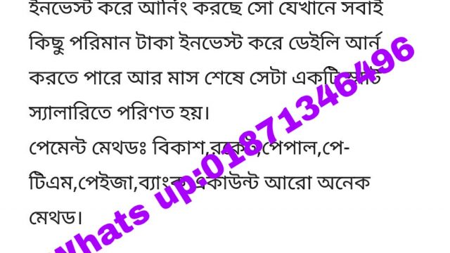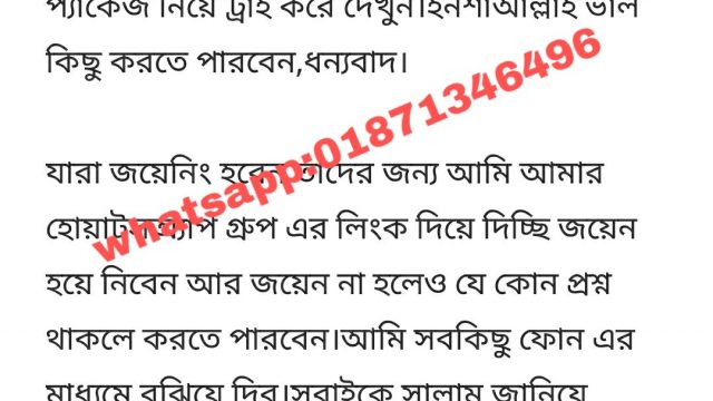 যারা ইনভেস্ট করতে চান তারা আমাকে সরাসরি হোয়াটসঅ্যাপে মেসেজ করুন আর আমার হোয়াটসঅ্যাপ গ্রুপে জয়েন হয়ে নিন।