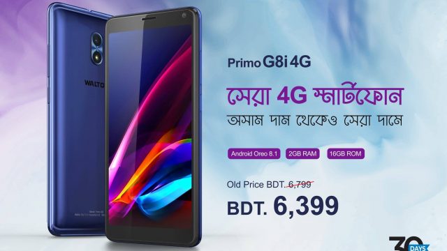 ৬৩৯৯ টাকায় ২ জিবি র্যাম এবং ৪জি সমৃদ্ধ প্রিমো জি৮ আই। স্মার্টফোনটি এর আগের জি৮আই এর আপডেটেড এবং ৪জি ভার্সন। একনজরে এই প্রিমো জি৮আই ৪জি স্মার্টফোনটিতে থাকছেঃ অ্যান্ড্রয়েড ৮.১ অরিও ভার্সন, ২ জিবি র্যাম এবং ১৬ জিবি রম - পাশাপাশি ৬৪ জিবি পর্যন্ত এক্সপান্ডেবল মেমোরি কার্ড সাপোর্ট, ১.৪ গিগাহার্জ কোয়াড কোর প্রসেসর, ৫.৩৪ ইঞ্চি ফুল ভিউ আইপিএস ডিসপ্লে, ৮ মেগাপিক্সেল রিয়ার এবং ৫ মেগাপিক্সেল ফ্রন্ট ক্যামেরা; আর সম্পূর্ণ ডিভাইসকে ব্যাকআপ দেয়ার জন্য ২২৫০ মিলি অ্যাম্পিয়ার ক্ষমতার ব্যাটারি।