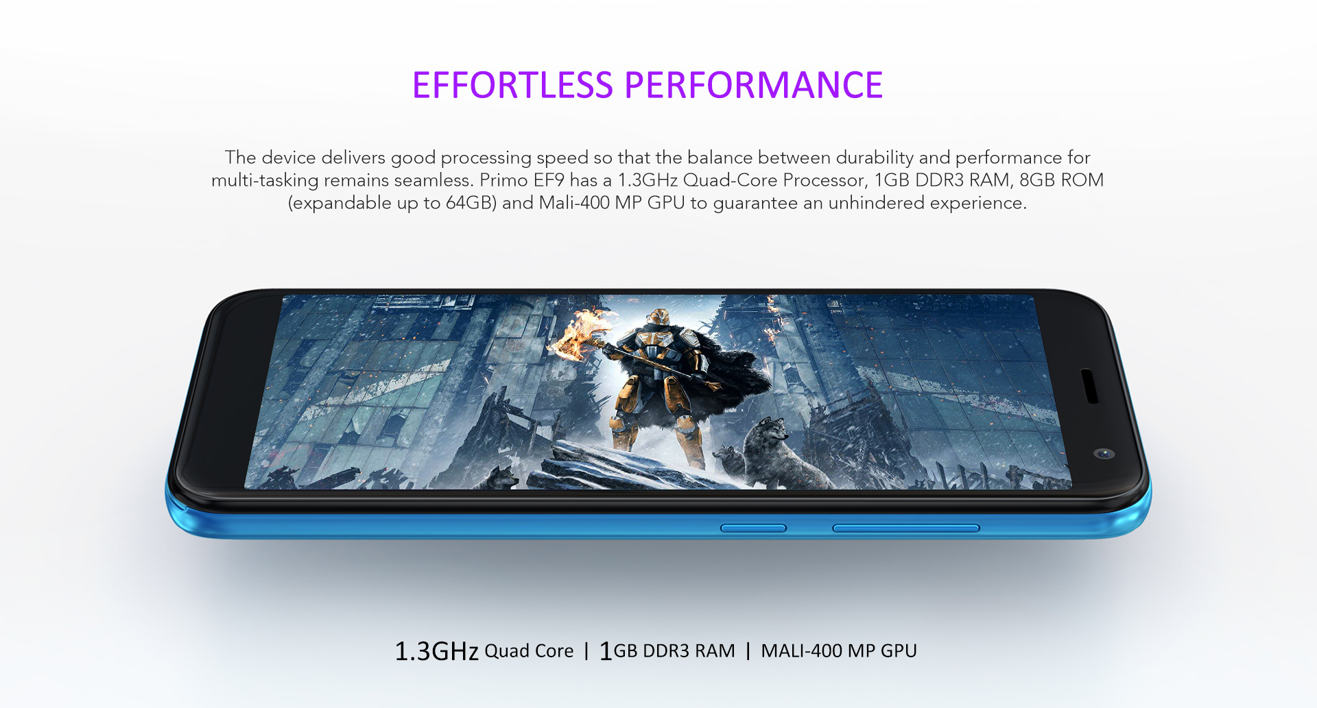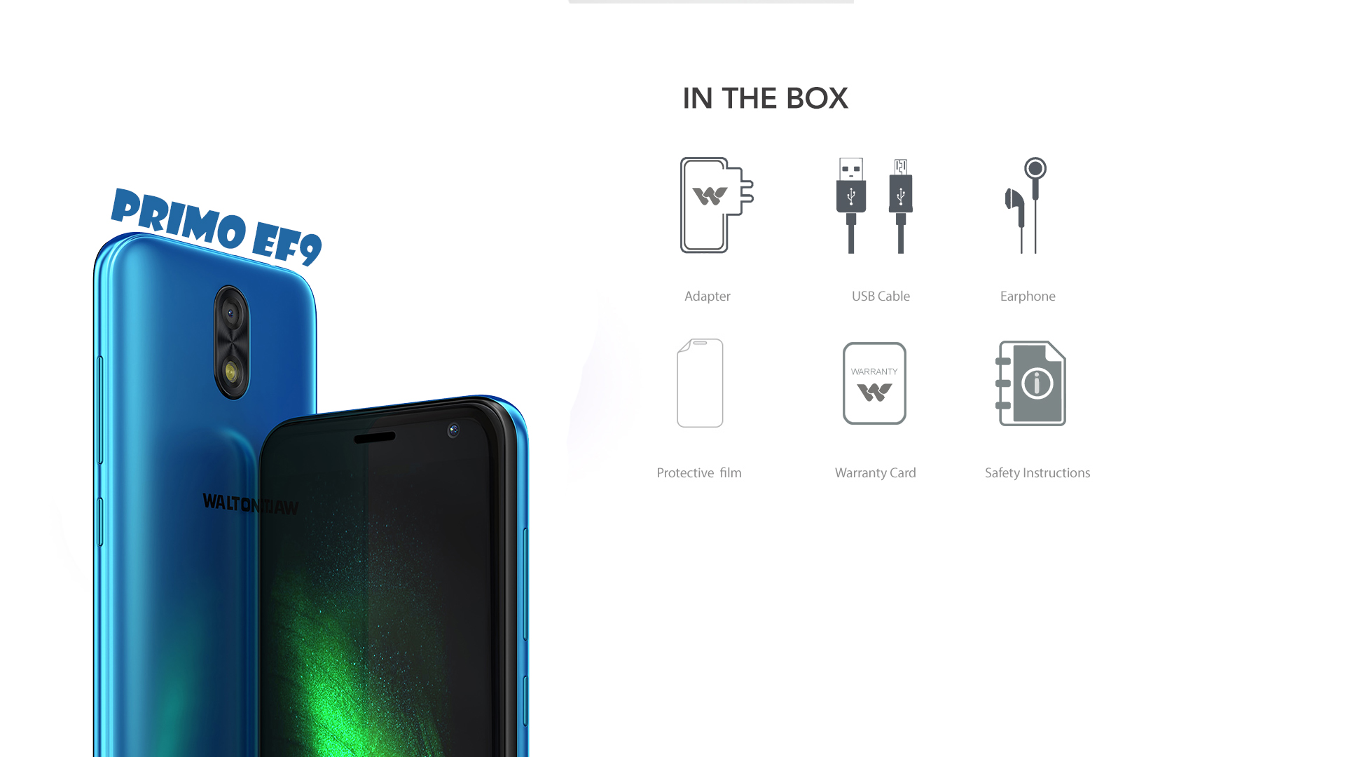 আনবক্সিং করলে যাযা পাওয়া যাবেঃ প্রিমো ইএফ৯ ডিভাইসটি, একটি চার্জার এডাপ্টার, একটি ইউএসবি কেবল, একটি বেসিক ইয়ারফোন, একটি স্ক্রিন প্রোটেকশন পেপার এবং সাধারন কিছু পেপারওয়ার্ক'স।