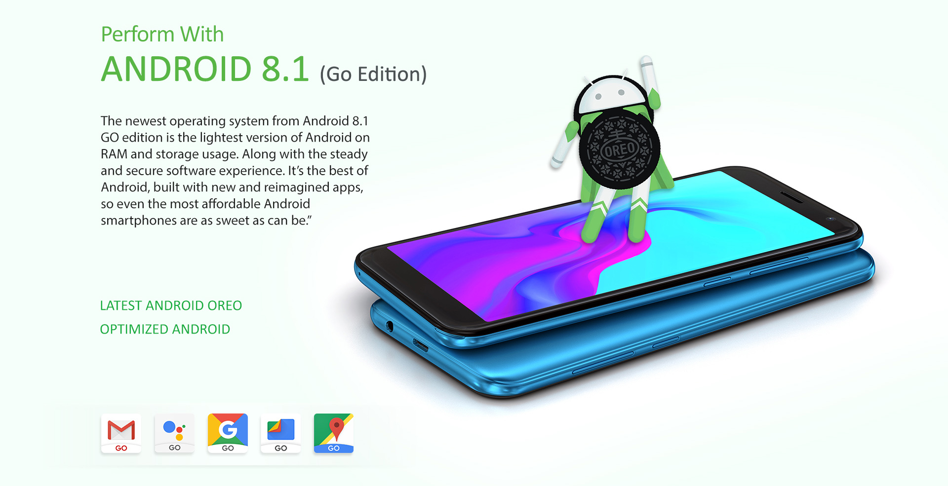 ডিভাইসটিতে অপারেটিং সিস্টেম হিসেবে থাকবে গত বছরের অ্যান্ড্রয়েড এর লাইট তথা ৮.১ অরিও গো এডিশন। আর এর ইউজার ইন্টারফেসও অন্যসব স্টক ৮.১ অরিও গো এর মতনই।