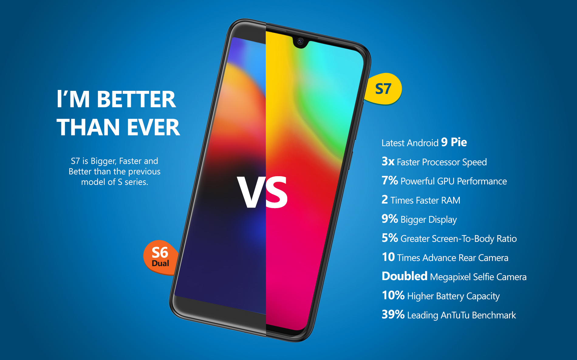 আগের এস৬ ডুয়ালের চাইতে নতুন এস৭ স্মার্টফোনটি বেশ আপগ্রেড। কেননা এতে অ্যান্ড্রয়েড এর সর্বশেষ ভার্সন থাকছে। ক্যামেরা, হার্ডওয়্যারে এর দিক দিয়েও এটি আগের এস৬ ডুয়ালের চাইতে অনেক শতাংশে আপগ্রেড। তাছাড়াও এটি এস সিরিজের অন্য সব ফোনের থেকে সাইজেও বড়।