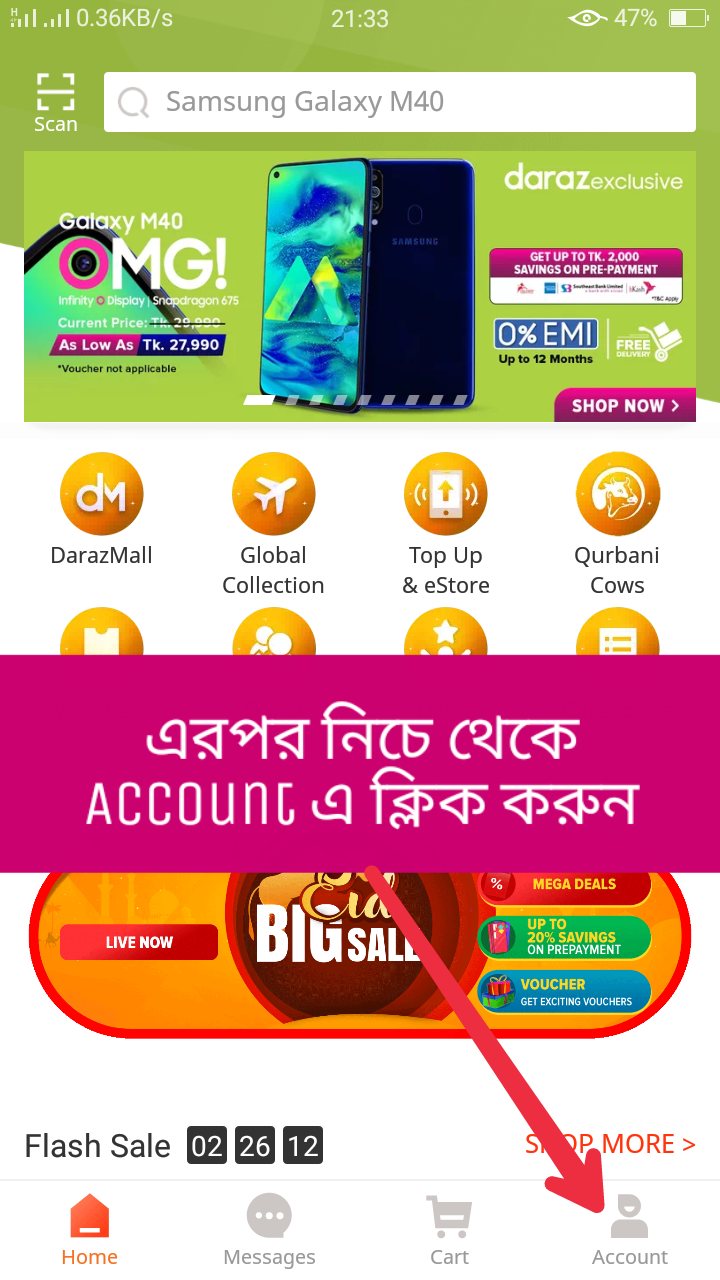 দারাজ এ একাউন্ট খোলার জন্য নিচের স্ক্রিনশট গুলো ফলো করুন।