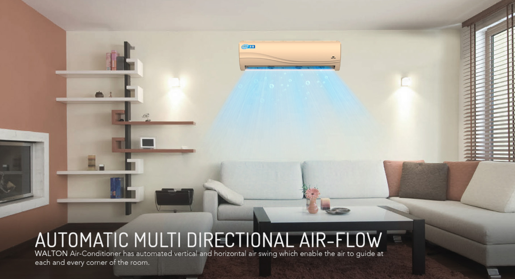 এই এসিটি মাল্টি ডাইরেকশনে বাতাস প্রবাহ করতে সক্ষম। অনেক কেবল এসি এক দিকেই বাতাস প্রবাহ করে, যার ফলে যারা কেবল এসির সামনে থাকে তারাই বাতাস পায়, ঘরের কোনায় বা অন্য কোন স্থানে থাকা কেউ বাতাস পায় না। তবে রিভারাইন এসির মাল্টি ডাইরেকশনে বাতাস প্রবাহ করার ফলে সব দিকেই প্রায় সমান শীতল বাতাস প্রবাহিত করা যাবে।