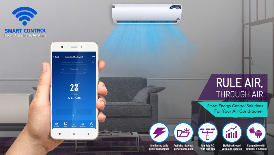 যেহেতু এসিটি আপনার ওয়াইফাই এর সাথে যুক্ত থাকতে সক্ষম, তাই আপনি এটিকে অ্যাপস এর মাধ্যমে এসির কাছে না থাকলেও, অন্য যেকোনো জায়গা থেকে নিয়ন্ত্রন করতে পারবেন। চিরাচলিত এসির রিমোট সবসময় হয়ত হাতের কাছে থাকে না, তবে মুঠোফোন সবসময়ই আমাদের সাথে থাকে, একারনে এসি নিয়ন্ত্রন হবে আরও স্মার্ট। আপনি একের অধিক এসি, এই একটি সিঙ্গেল অ্যাপস বা অ্যাপলিকেশন ব্যবহার করে নিয়ন্ত্রন করতে পারেন। এর পাশাপাশি অ্যাপস থেকে এসির দৈনিক পাওয়ার কন্সামপশন রিপোর্ট, স্ট্যাটিস্টিক রিপোর্ট, পারফর্মেন্স ডাটা ইত্যাদি তথ্য পাবেন।