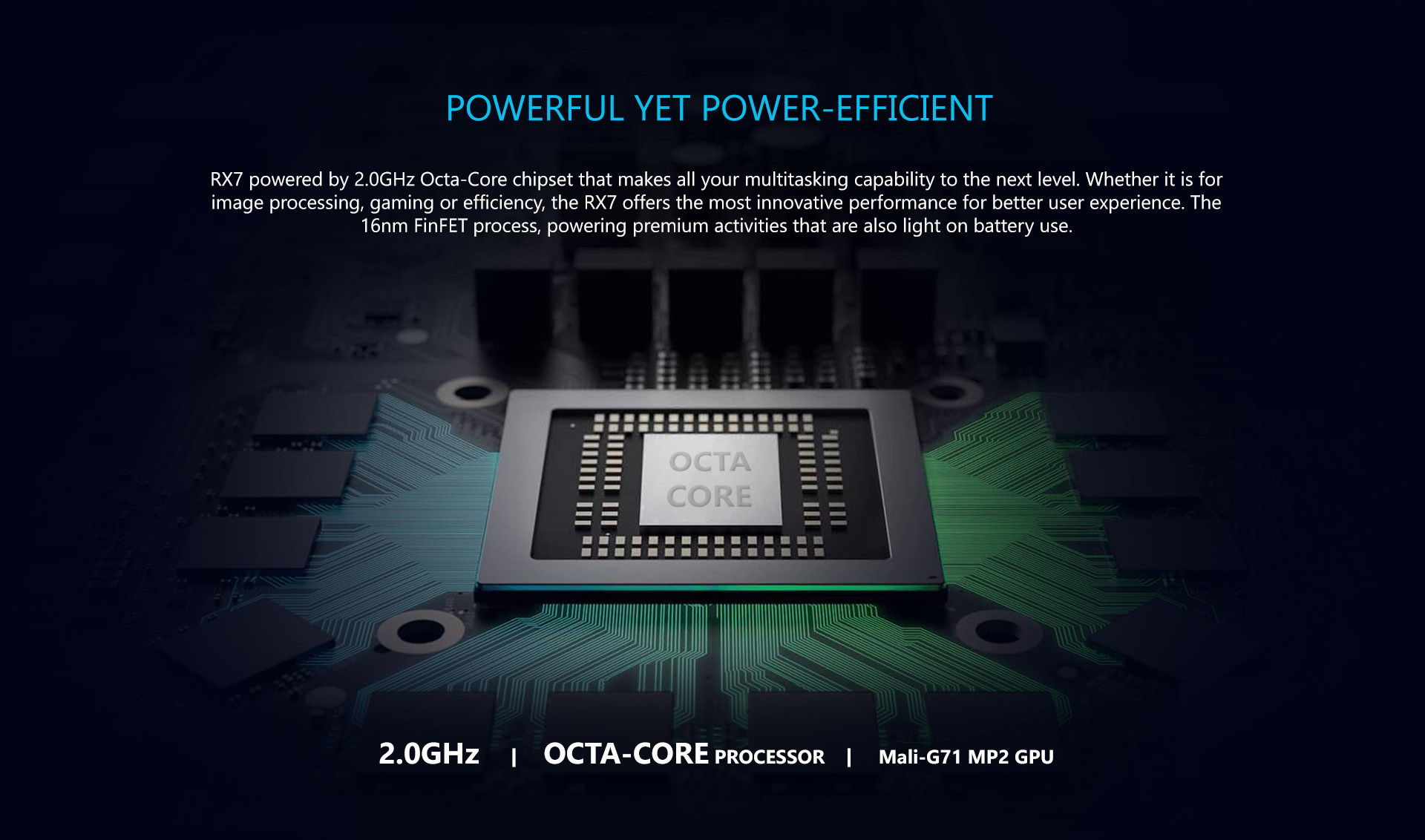 Primo RX7 ডিভাইসটিতে ব্যবহার করা হয়েছে এমটি৬৭৬৩ চিপসেট। আর এই এআরএম করটেক্স এ৫৩ (এমটি৬৭৬৩) চিপসেটকে স্ন্যাপড্রাগন ৬২৫ এর সাথে তুলনা করা যায়। এই অক্টাকোর প্রসেসরটির ক্লক স্পিড ২ গিগাহার্জ। এর সাথে থাকছে মালি জি৭১ এমপি২ জিপিইউ, যা ৭৭০ মেগাহার্জ ক্ষমতা সম্পন্ন একটি গ্রাফিক্স প্রসেসিং ইউনিট।