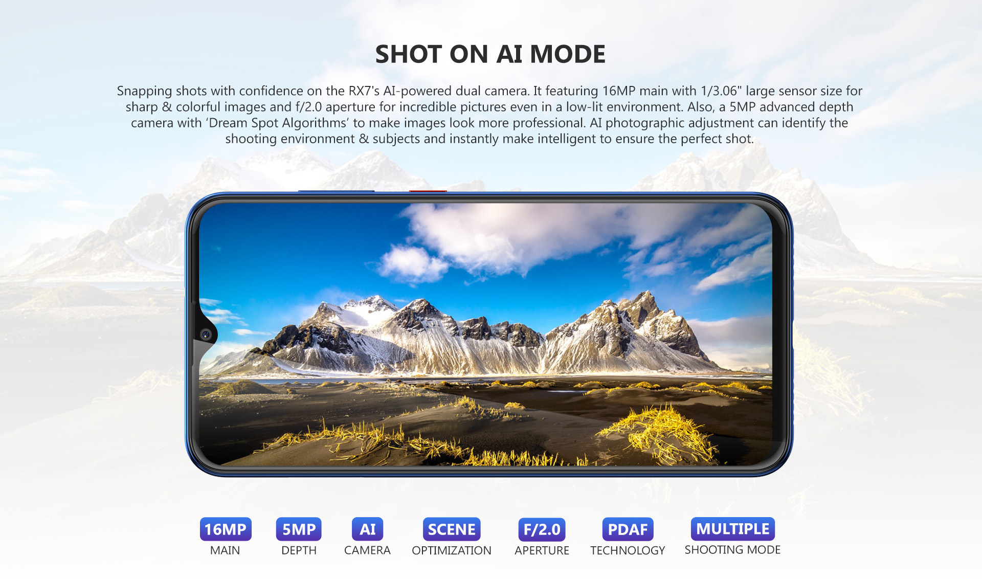 Primo RX7 এর সেকেন্ডারি রিয়ার ক্যামেরার অ্যাপারচার f/2.0, সুতরাং এর মাধ্যমে আপনি দারুন সব ছবি তুলতে পারবেন, যেখানে ছবির কোয়ালিটি যেমন সুন্দর থাকবে, তেমনি সাবজেক্টকে ফোকাসে রেখে ব্যাকগ্রাউন্ড ঘোলা করতেও সুবিধা হবে। আর এই ক্যামেরায় থাকা আর্টিফিশিয়াল ইন্টেলিজেন্স প্রযুক্তি, ছবির বিষয় এবং পরিবেশ এর ওপর বিবেচনা করে নিজে থেকে ছবিতে কিছু ইন্টেলিজেন্স ইফেক্ট ও এডজাসমেন্ট প্রয়োগ করবে। ডুয়াল ক্যামেরা মডিউল এর সাথে থাকবে একটি ভালো মানের ফ্ল্যাশ।