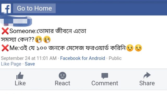 অনেকেই বিভিন্ন সোস্যাল মিডিয়া সাইটগুলোতে বলে এই message টি বাকি ২০ বা