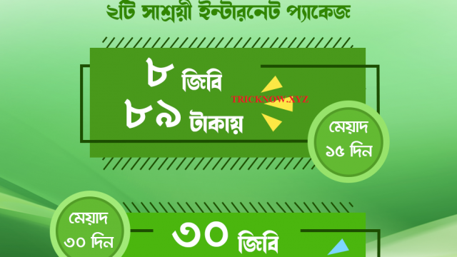 * ১৫ দিন মেয়াদে ৮ জিবি ইন্টারনেট মাত্র ৮৯ টাকায় এই অফারটি উপভোগ করার জন্য প্রিপেইড গ্রাহকগণ ডায়াল করুন *১১১*৮৯# অথবা এসএমএস অপশনে গিয়ে SP8 টাইপ করে SMS পাঠিয়ে দিন ১১১ নম্বর-এ অথবা রিচার্জ করুন৮৯ টাকা।