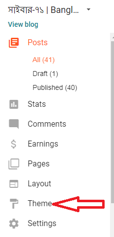 এখন আপনি আপনার Blogger এর theme অপশেন কিল্ক করুন এই ভাবে।