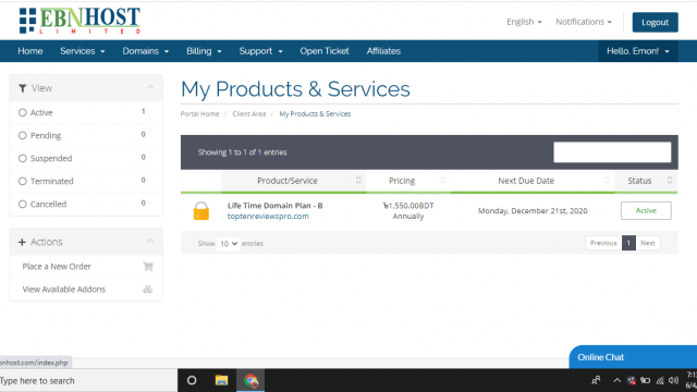 আমি Ebhost থেকে ২০১৯ ডিসেম্বর মাসে ১০ জিবি হোস্টিং কিনেছিলাম। তখন অফার চলা কালিন সময়ে এখন ও রিনিউ খরচ ১৫৫০ টাকা নিবে EbnHost আমি এই হোস্টিং টি এখন সম্পুর্ন এক্সেস সহ বিক্রি করবো মাত্র ১০০০ টাকায় ডোমাইন হোস্টিং সহ যদি কেও কিনতে চান আমার সাথে যোগাযোগ করবেন। web site https://toptenreviewspro.com/