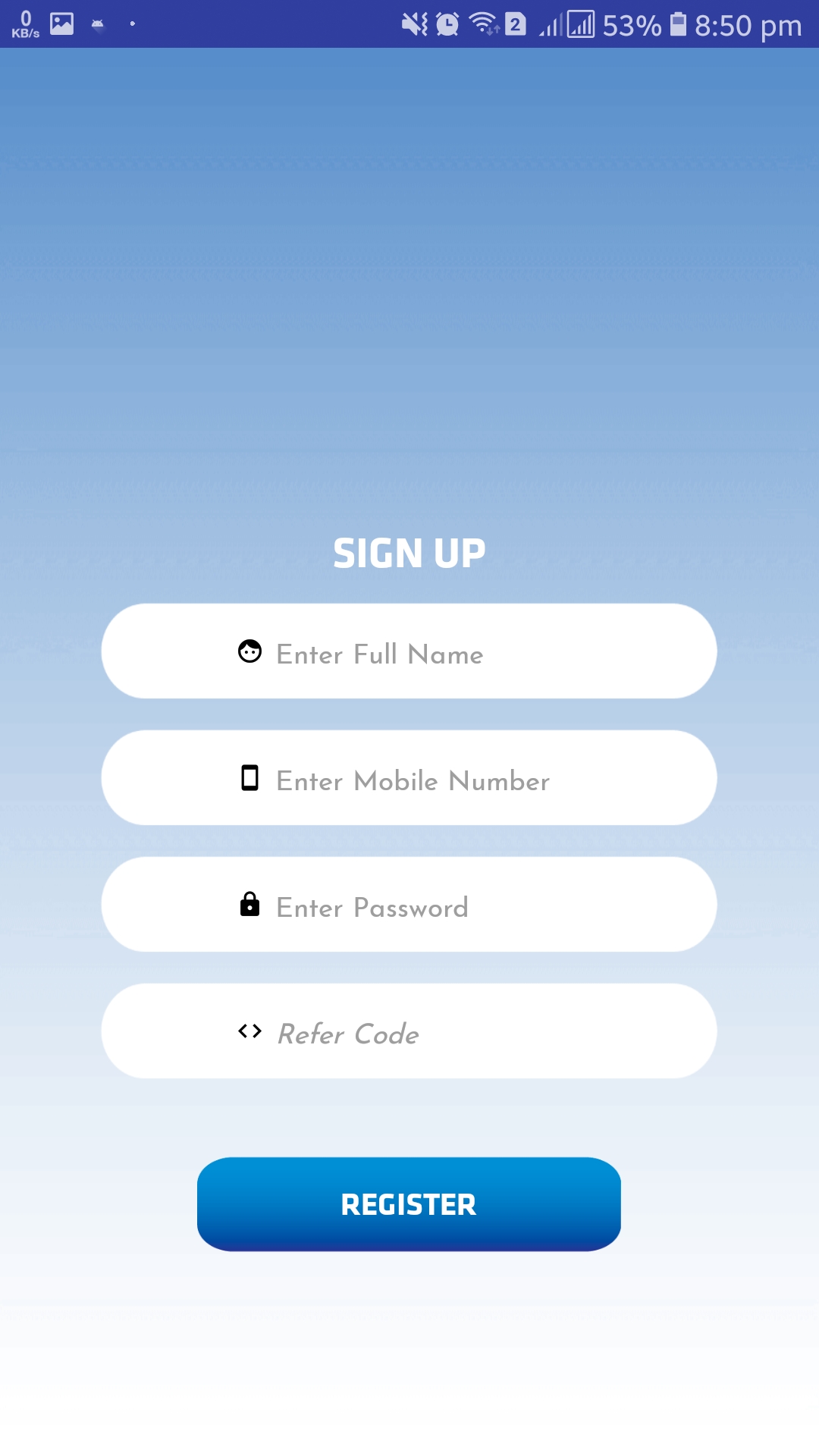 এখনে ১ম বক্সে আপনার নাম, ২য় বক্সে মোবাইল নাম্বার, ৩য় বক্সে ৬ সংখ্যার পাসওয়ার্ড এবং শেষ বক্সে রেফারেল কোড দিতে হবে।