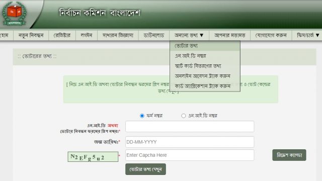 এরপর এখান থেকে অন্যান্য তথ্য মেনু থেকে ভোটার তথ্যে ক্লিক করলে নিচের মতো একটি অপশন পাওয়া যাবে-
