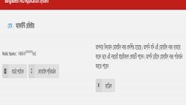 এবার যাচাইকরণ কোডটি দিন বক্সে মেসেজে আসা কোডটি টাইপ করে বহাল বাটনে ক্লিক করুন। দেখবেন নিচের মতো একটি উইন্ডো আসবে-