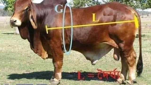 L= গরুর দৈর্ঘ এবং G= গরুর বেড়