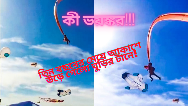 কী ভয়ঙ্কর! তিন বছরের মেয়ে আকাশে উড়ে গেলো ঘুড়ির টানে!