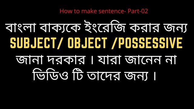 বাংলা বাক্য কে ইংরেজি করতে হলে Subject/ Object/Possessive / Double possessive/ treble possessive / সম্পর্কে আপনাকে জানতে হবে। যারা জানেন না ইংরেজি বাক্য লিখতে চান তাদের জন্য এই ভিডিও টি।